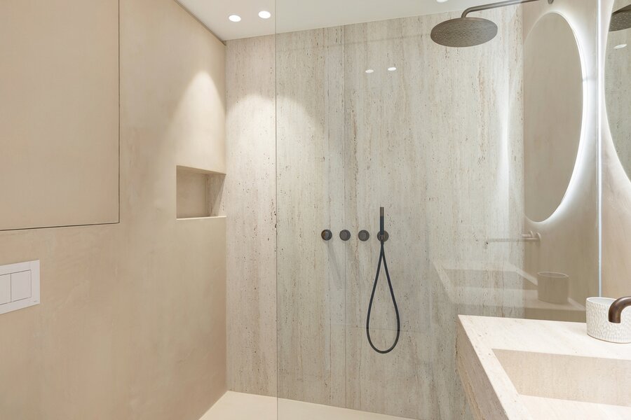 L’appartement dispose de 2 larges terrasses, l’une donnant sur la mer et l’autre orientée sud avec une vue dégagée sur la verdure.