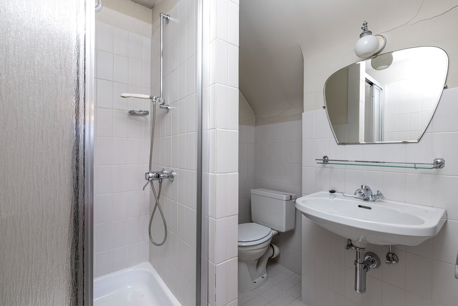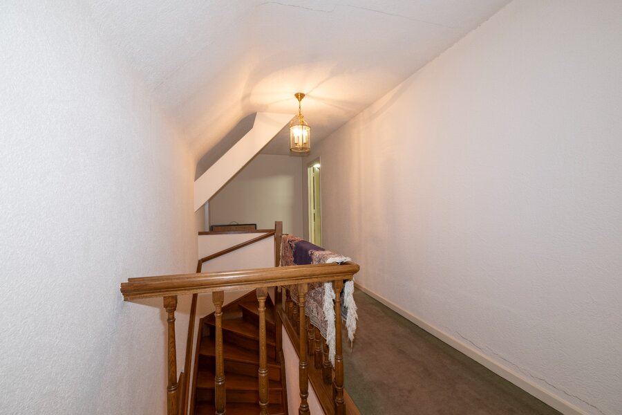L'escalier fixe nous mène au 2e étage avec ici un petit palier. Celui-ci nous mène à la 6e chambre avec sa propre salle de douche. Le reste est un grenier extrêmement spacieux (110 m²) avec de nombreuses possibilités.