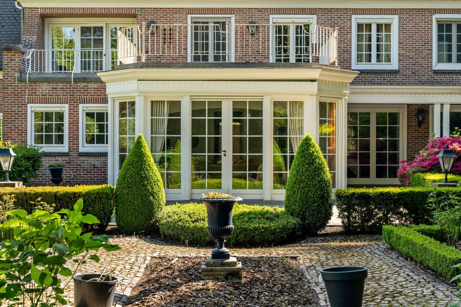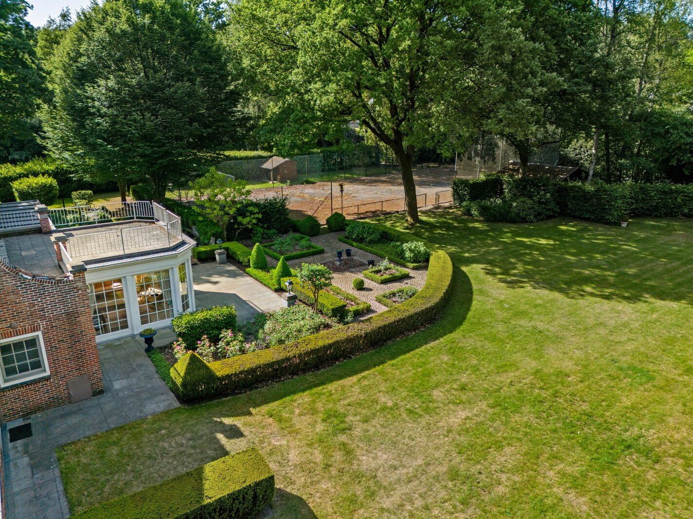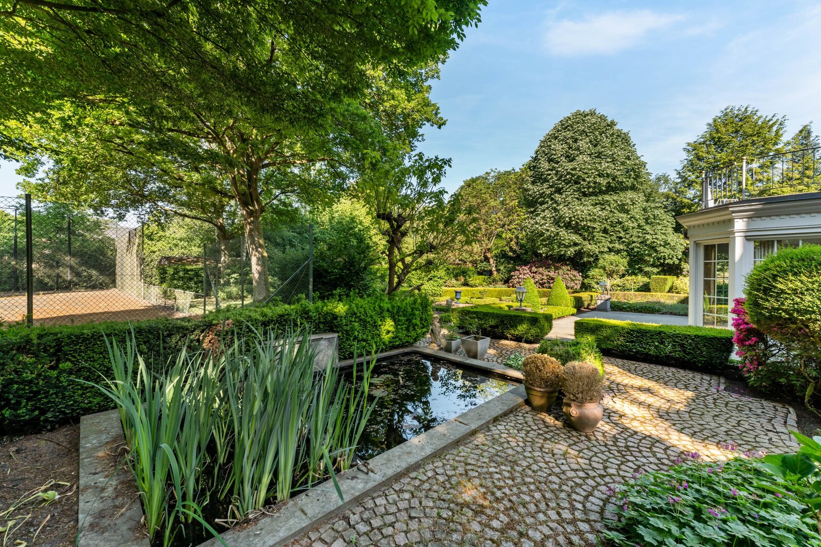 - Jardin magnifiquement aménagé et ensoleillé avec entre autres une belle terrasse, un étang, un terrain de tennis et des dépendances de jardin