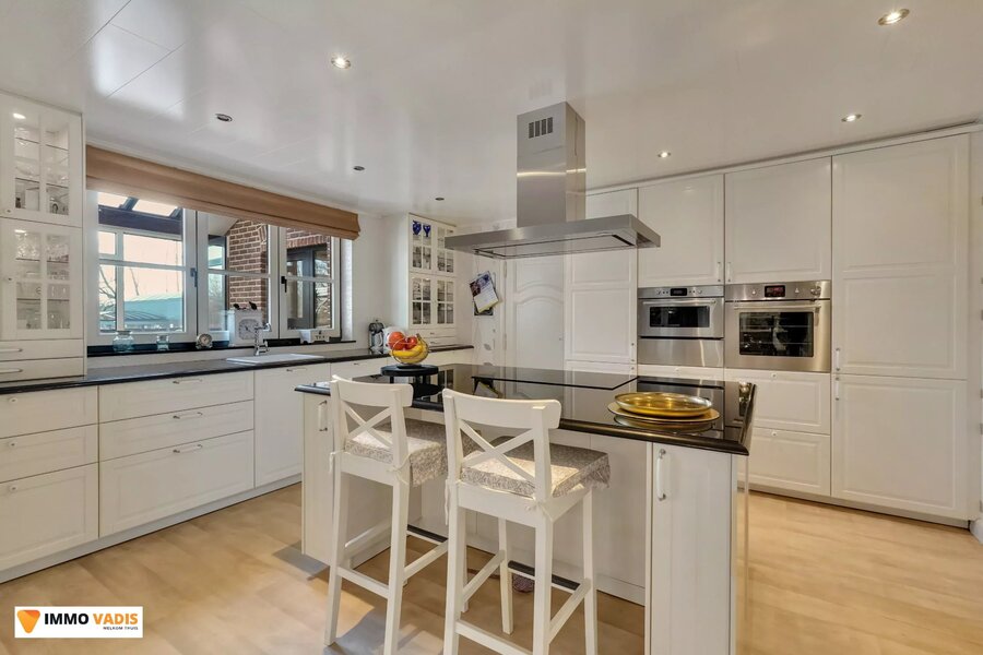 - Open inbouwkeuken (19 m²) met gootsteen, granieten werktablet, inductiekookplaat met afzuigkap, stoomoven, micro-oven, vaatwasser, koelkast en vriezer
