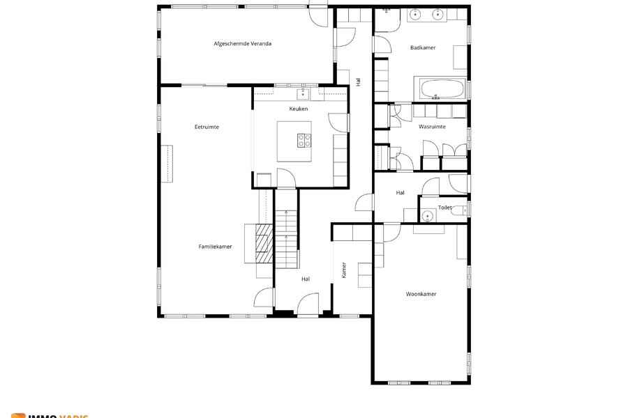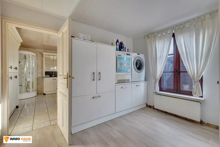 - Waslokaal (11 m²) met inbouwkasten en voorzieningen voor wasmachine en droogkast