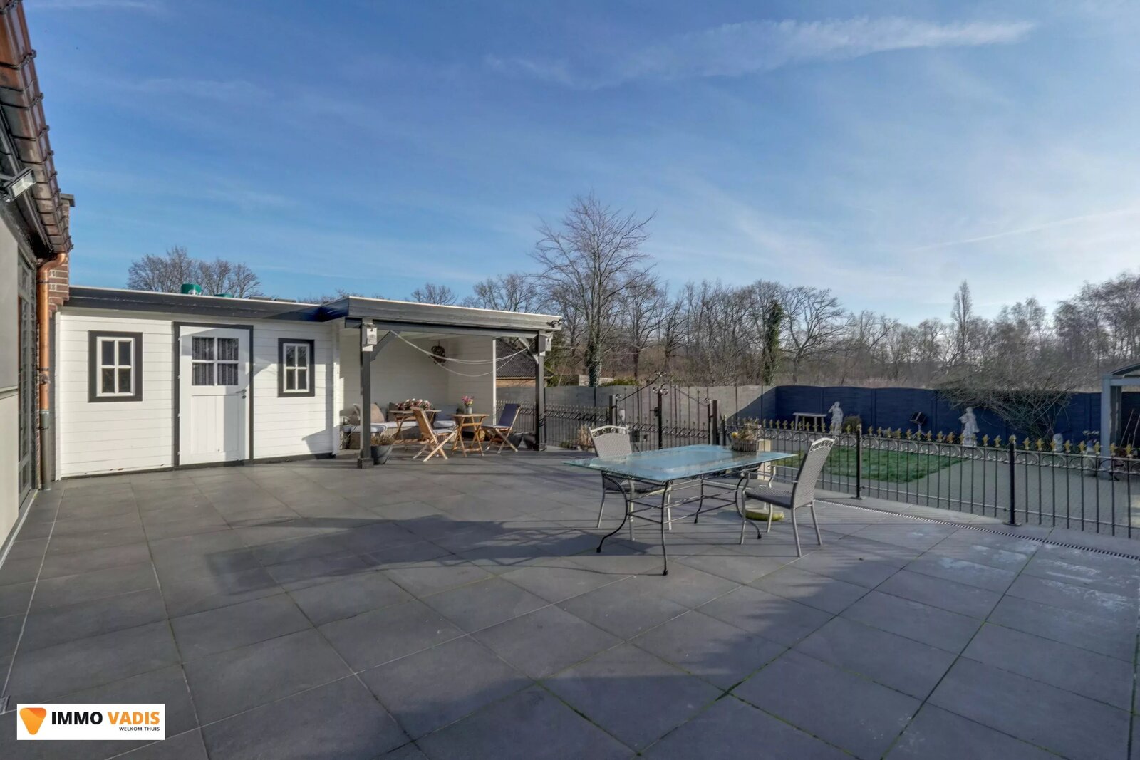 Het overdekt terras en buitenterras maken het mogelijk elk seizoen te genieten. Daarnaast is er een tuinberging met een aparte keuken.