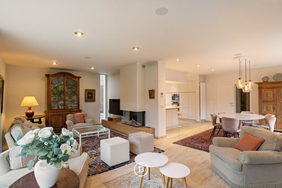 Grâce aux larges baies vitrées, la maison bénéficie d’une belle luminosité tout au long de la journée. Le jardin facile d’entretien avec une agréable terrasse constitue un espace extérieur paisible sans contraintes. La maison a été entièrement rénovée en 2017, contribuant à un confort durable et à une habitation tournée vers l’avenir.