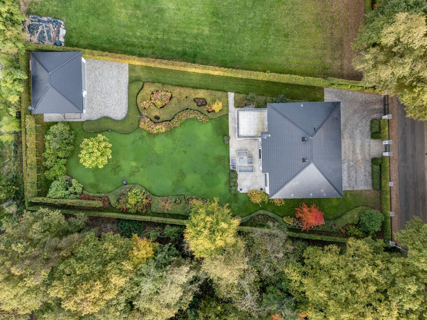 Le garage au bout de l'allée est une maison à lui tout seul et peut accueillir 3 voitures.