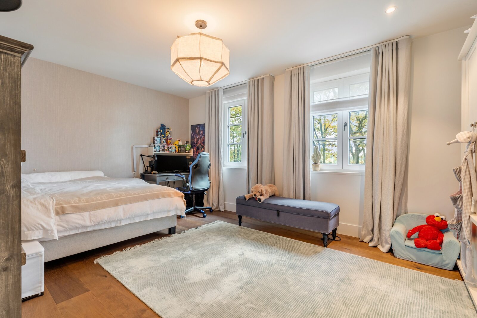 Adjacent à la salle de séjour, il y a une pièce multifonctionnelle très spacieuse qui sert actuellement de bureau. Si désiré, cet espace permet d'accueillir une nourrice ou un parent vivant.