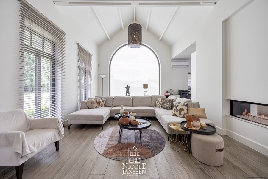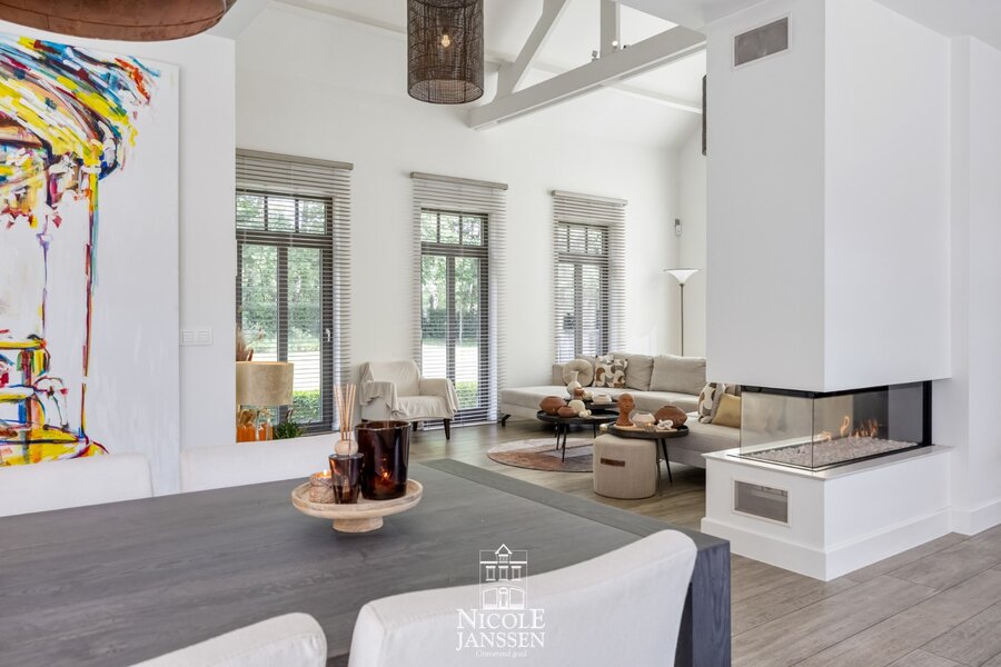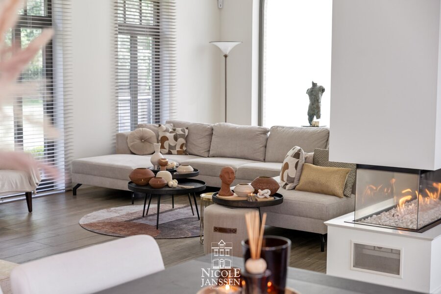 - Sfeervolle zithoek met centraal geplaatste gashaard als blikvanger