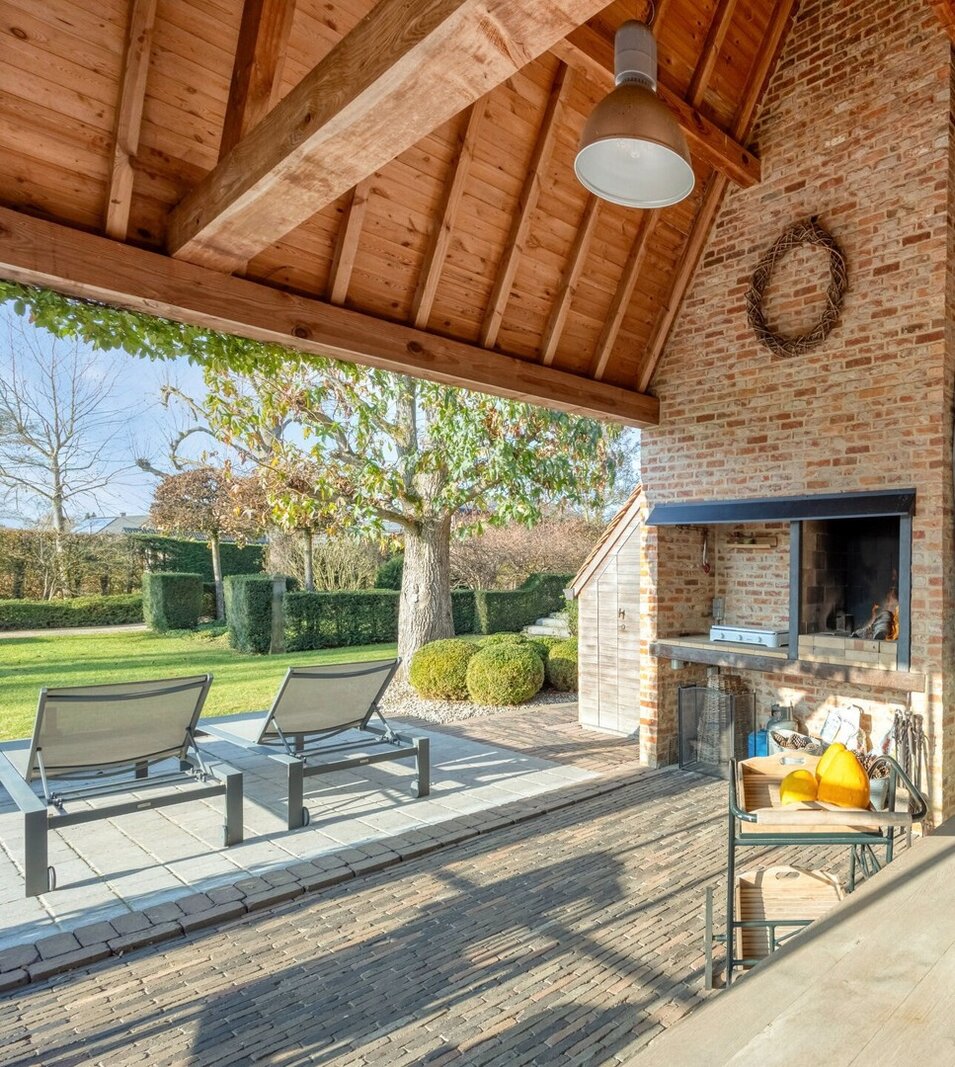 Van al deze sferen geniet je vanaf het mooie paviljoen voorzien van een open haard en prachtig terras (overdekt en open).