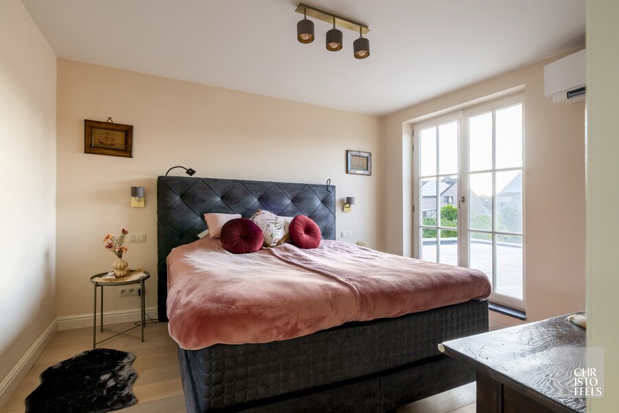 De eerste verdieping, voorzien van een eiken parketvloer, omvat twee volwaardige slaapkamers, een ruime dressing en twee luxueuze badkamers. De zolderverdieping biedt plaats aan nog eens twee slaapkamers met ingebouwde kasten, ideaal voor kinderen, gasten of hobbyruimte.