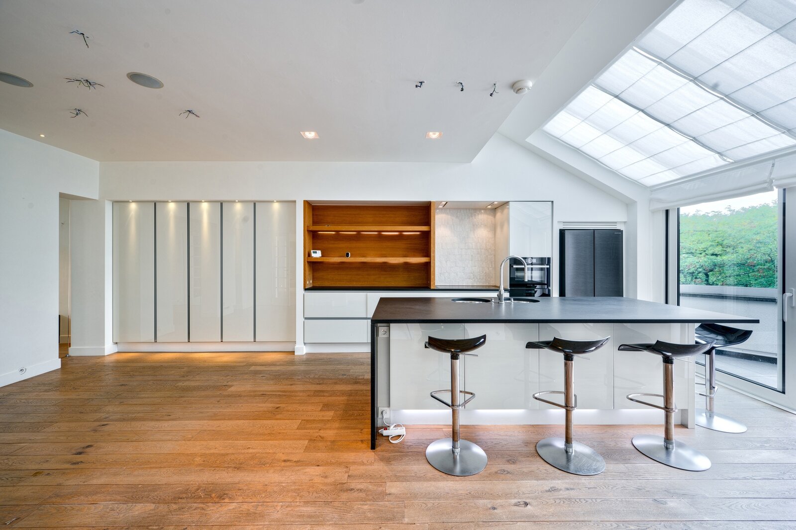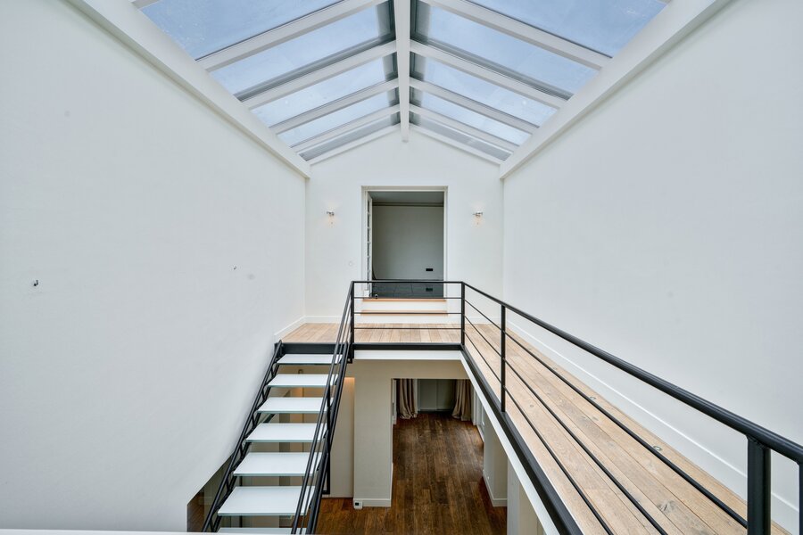 Articulé autour d'une galerie et d'un puits de lumière, découverte du premier étage comprenant un séjour avec feu-ouvert, une salle à manger, une cuisine hyper-équipée, une chambre et sa salle de douche et un petit salon, le tout complété par une belle terrasse d'environ 30m2.