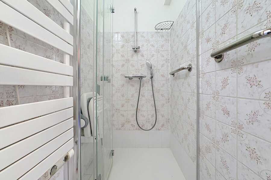 L’espace nuit se compose d’un hall de nuit distribuant trois chambres de ±17 m², ±13 m² et ±11 m², une salle de bains, une salle de douche et une terrasse arrière de ± 8,5 m².
