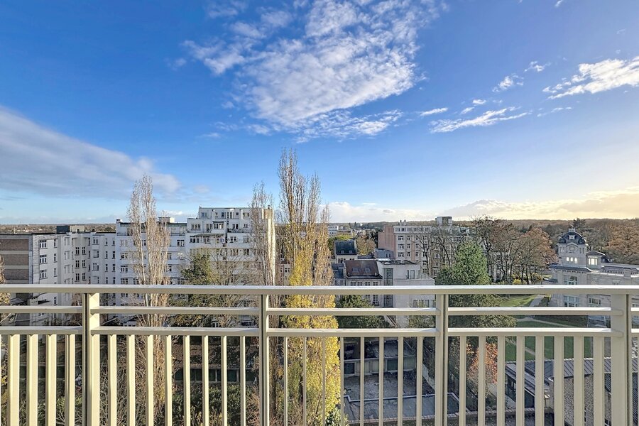 Situé au 7ᵉ étage d’un immeuble bien entretenu de l’Avenue de l’Orée, entre le Bois de la Cambre et le Square du Vieux Tilleul, cet appartement traversant développe une superficie brute de ±150 m² et offre de très beaux volumes, une luminosité exceptionnelle et un potentiel de rénovation rare dans ce quartier recherché. Dès l’entrée, vous découvrez un hall qui mène vers un vaste séjour s’ouvrant sur une agréable terrasse avant de 10,5 m², et qui dessert Un WC séparé. Une cuisine spacieuse bénéficie également d’un accès direct à une terrasse avant.