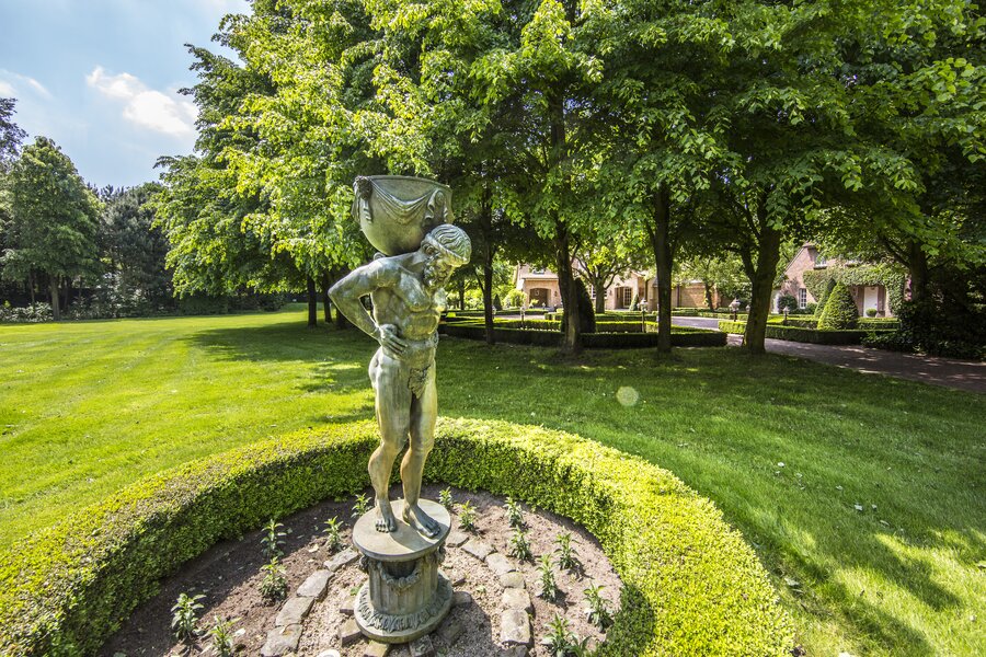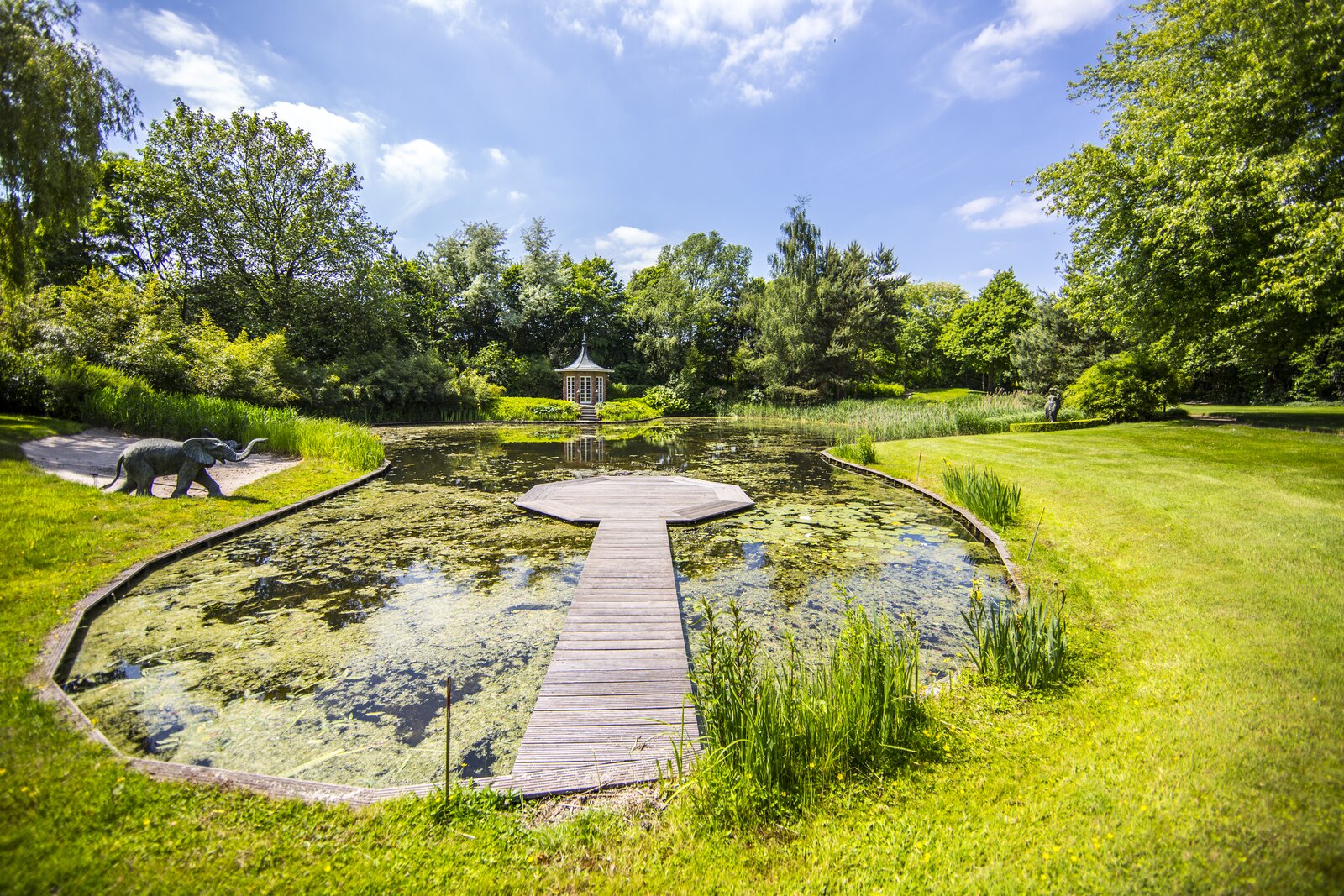 Het pronkstuk van deze eigendom is ongetwijfeld de professioneel aangelegde 9-holes golfbaan, harmonieus verweven met het omliggende landschap van ruim 6,5 hectare. De paden door het bos nodigen uit tot ontspannende wandelingen, terwijl de statige vijver de blikvanger is van de tuin. De combinatie van uitgestrekte greens, schaduwrijke bomen en waterpartijen vormt een echt paradijs voor de golfliefhebber én de natuurliefhebber.