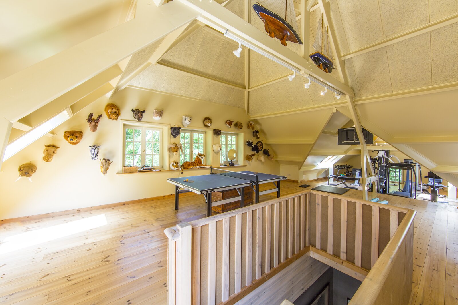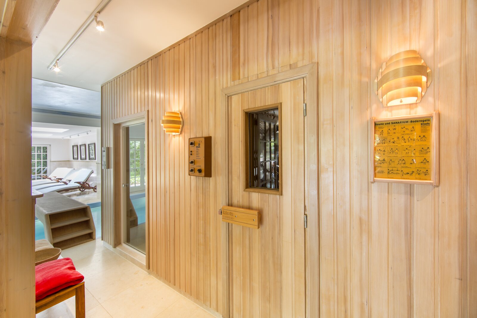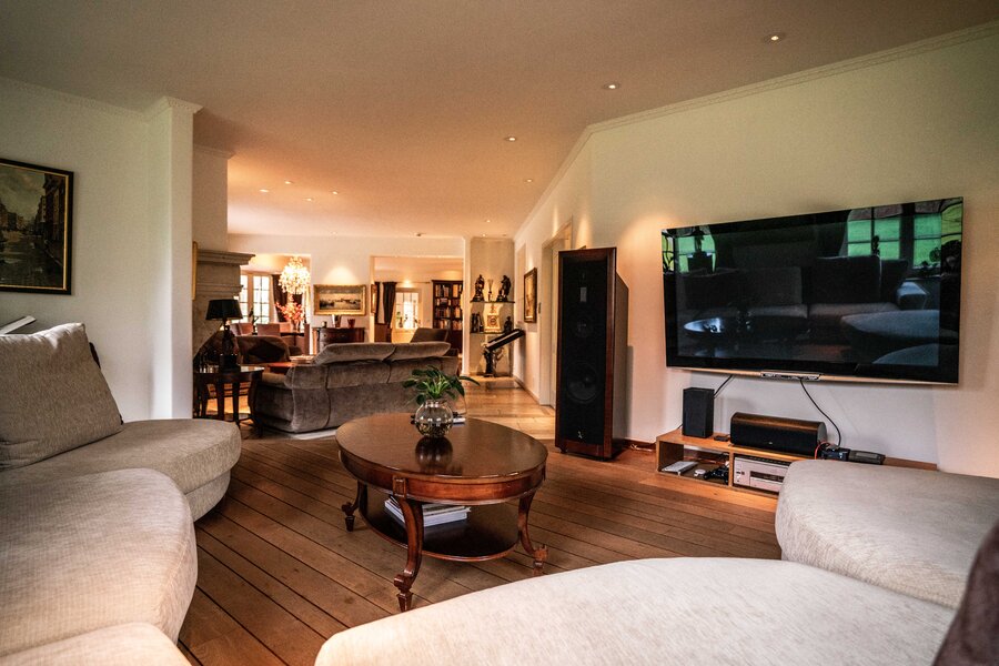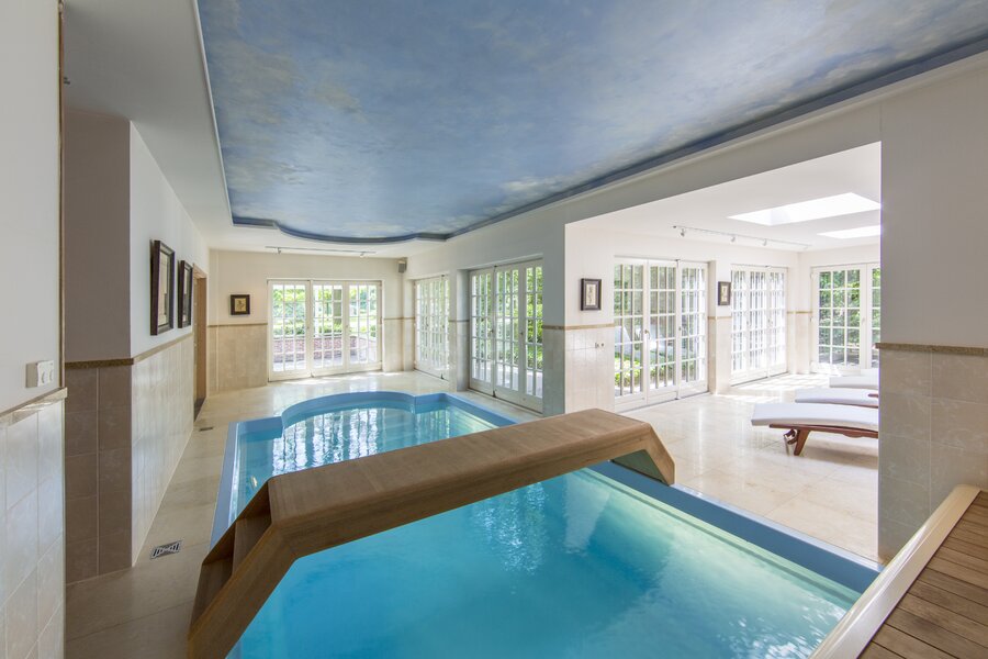 De wellness met binnenzwembad en volledige fitnessruimte maakt het plaatje compleet voor wie op zoek is naar luxe en welzijn onder één dak. De volledig geïnstalleerde bar is dé plek voor onvergetelijke home parties, en dankzij de garage voor zes wagens is ook aan uw autoverzameling gedacht.