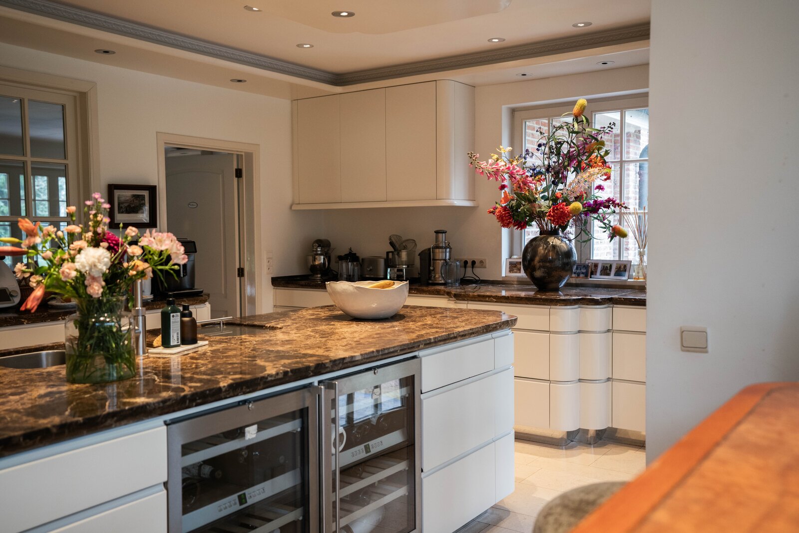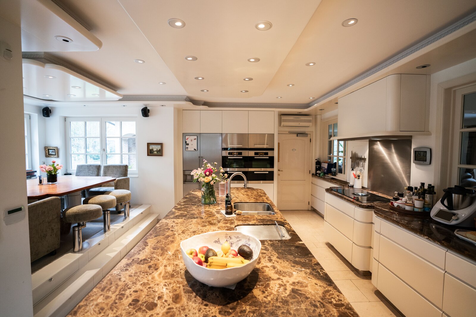 De woning telt vier royale slaapkamers, elk voorzien van een eigen badkamer. Daarnaast zijn er drie uitnodigende salons en een grote leefkeuken die perfect aansluit bij de elegante eetruimte.