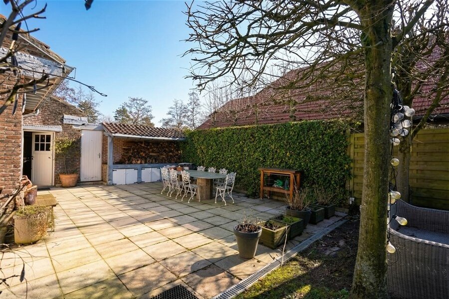 Elle se compose d'un élégant hall d'entrée avec toilettes et vestiaire - un espace de vie spacieux et charmant constitue le cœur de la maison et comprend une impressionnante cheminée (croix de Bourgogne) - une cuisine équipée avec appareils électroménagers - une salle de jardin séparée offre des vues sur la verdure et peut servir de bureau, de coin lecture ou de salle de petit déjeuner - une buanderie et un espace de rangement pratiques et un double garage.