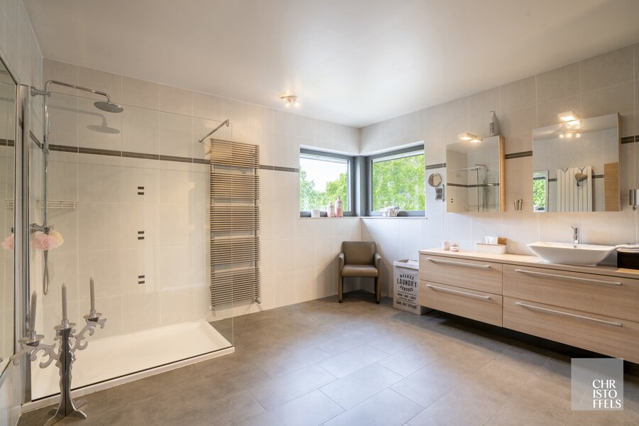 De eerste badkamer beschikt over een ligbad en een wastafel, terwijl de tweede badkamer is uitgerust met een ruime inloopdouche en een inloopdressing.