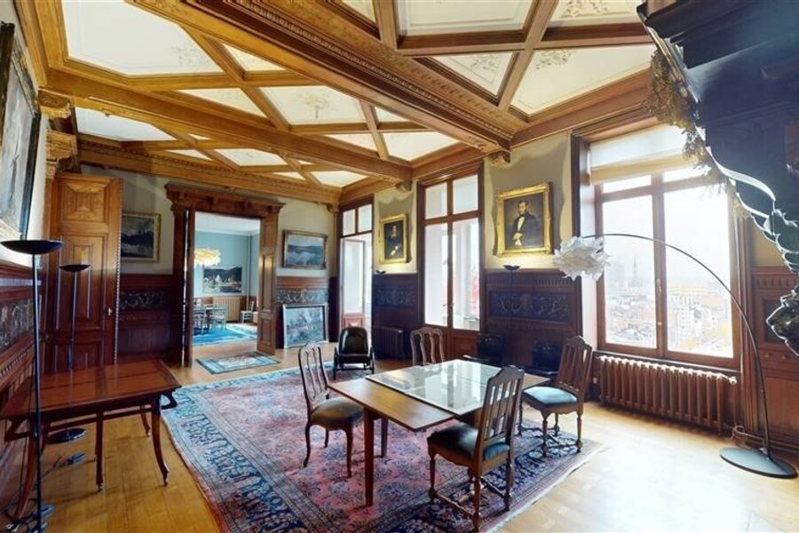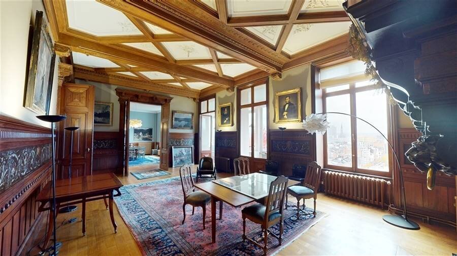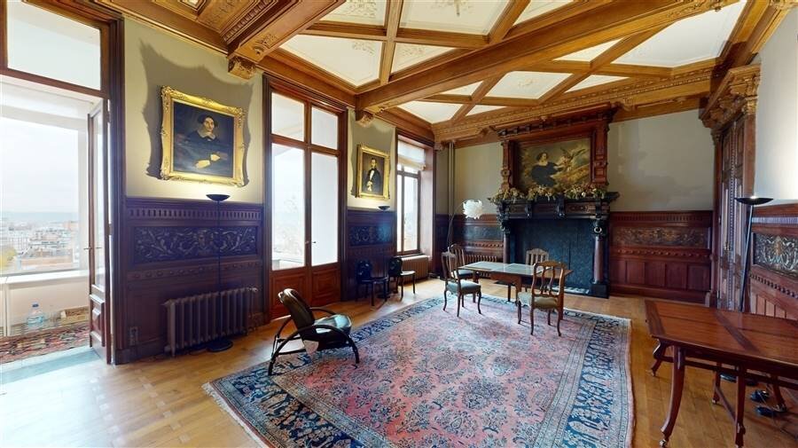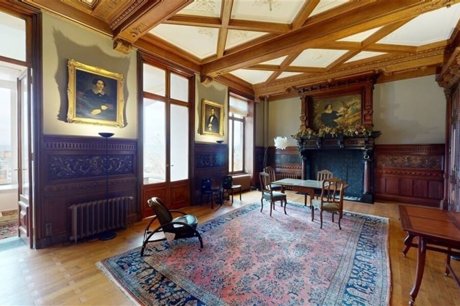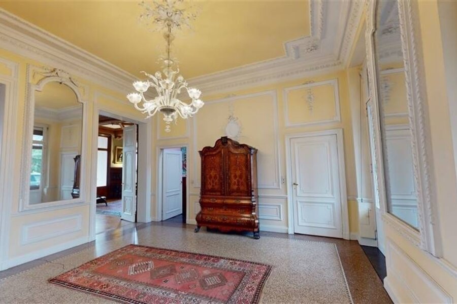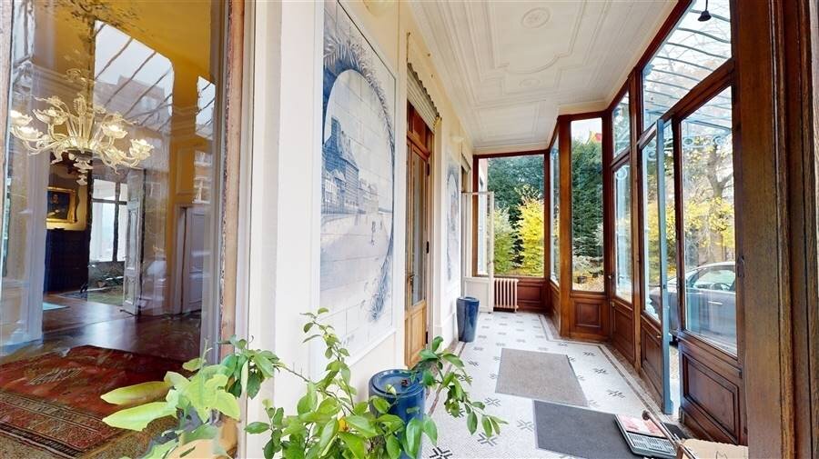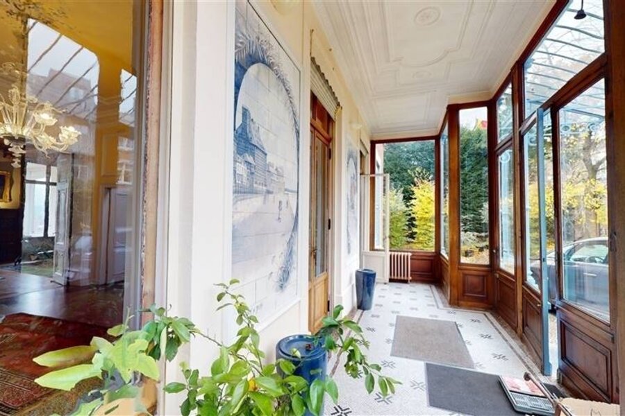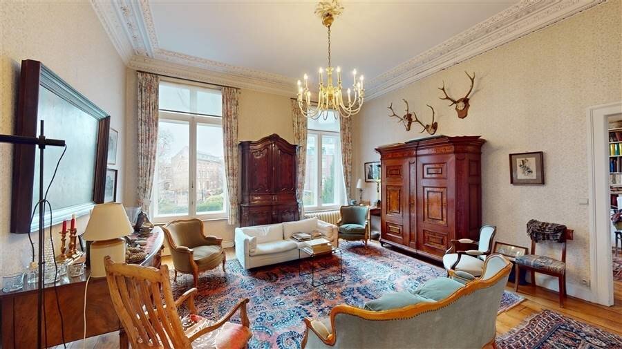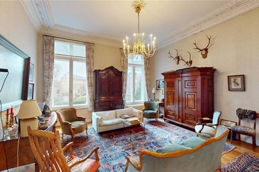 Retirée dans un clos privé, au milieu d’un jardin de +/- 1.500 m², cette imposante et lumineuse demeure ancienne aux décors préservés, offre une superficie intérieure de plus de 1.000 m².