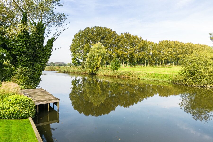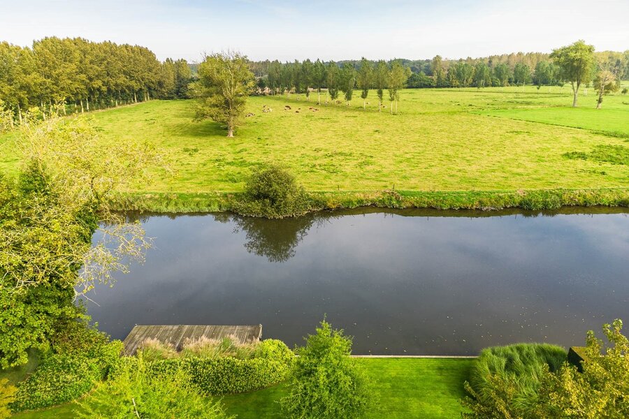 Een privé-ponton biedt directe toegang tot de rivier en nodigt uit tot ontspannen momenten op het water. Dankzij de doordachte inplanting geniet u hier van volledige privacy, zonder inkijk, in een uitzonderlijk groene omgeving.