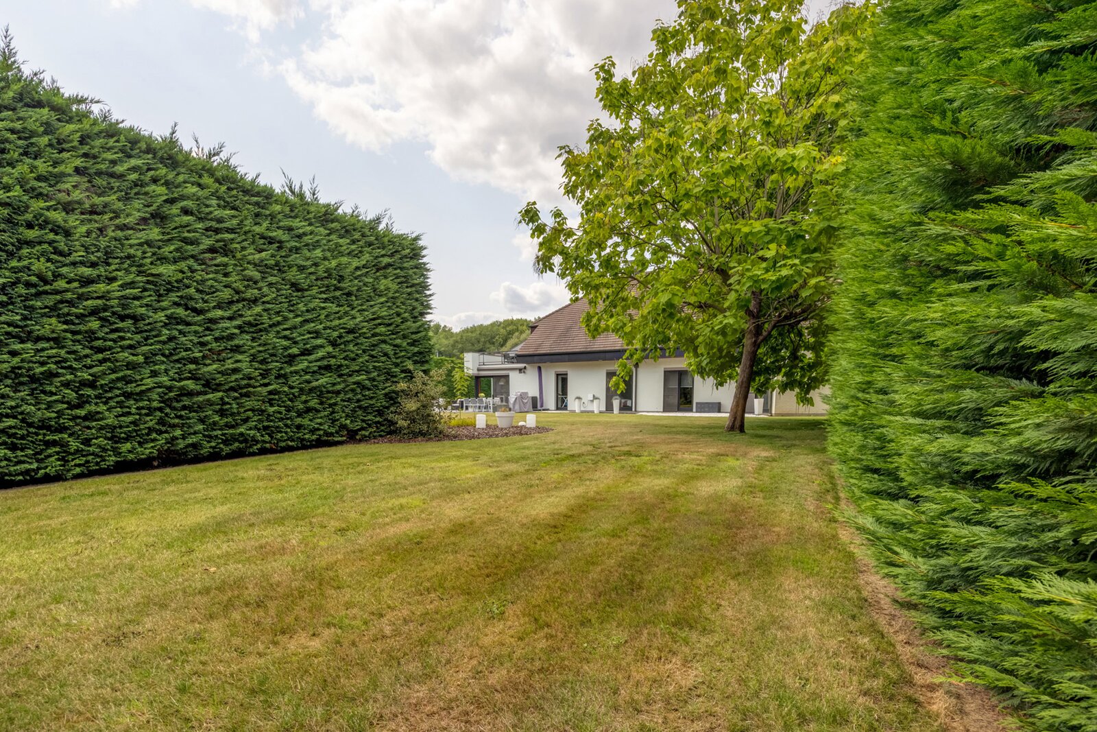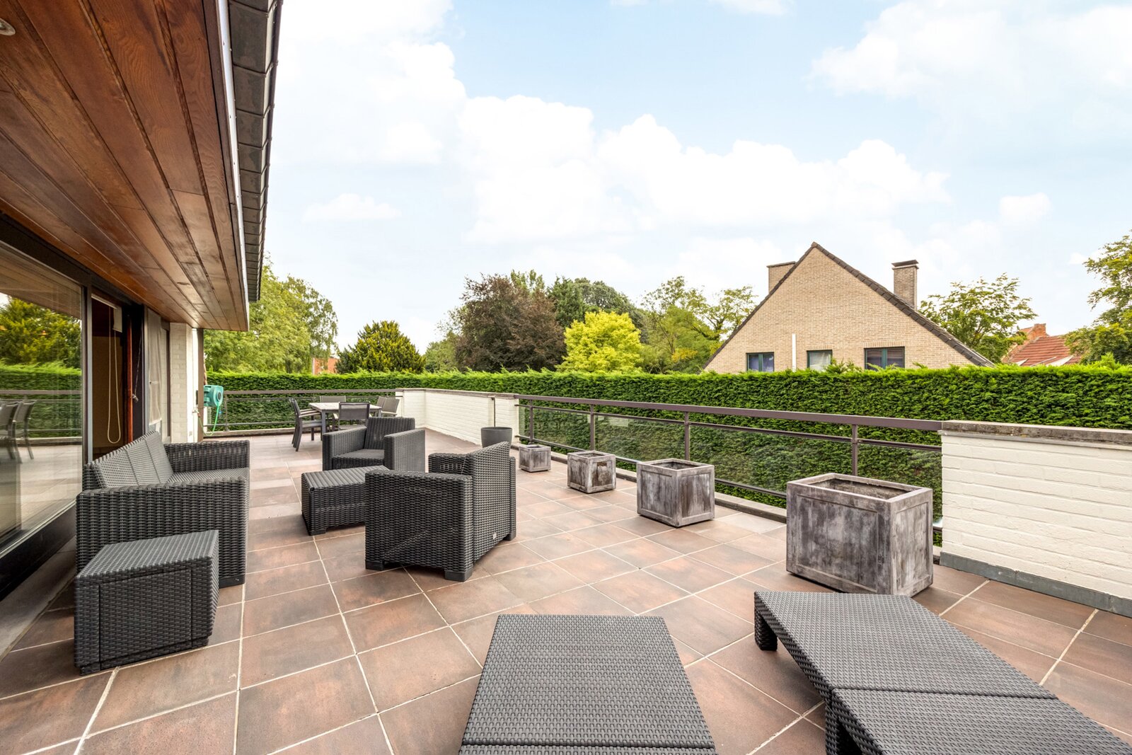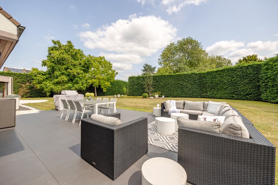 Buiten wordt de woning omringd door een goed onderhouden tuin en meerdere terrassen. Dankzij de inrichting is privacy gegarandeerd. Een alarm zorgt voor een veilig gevoel.