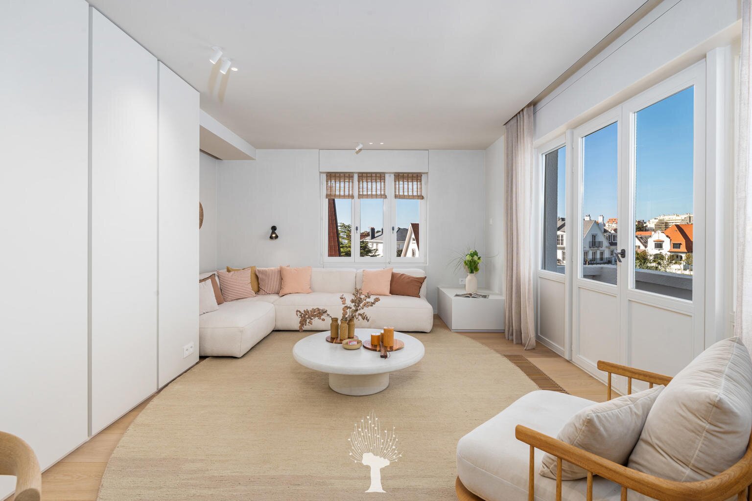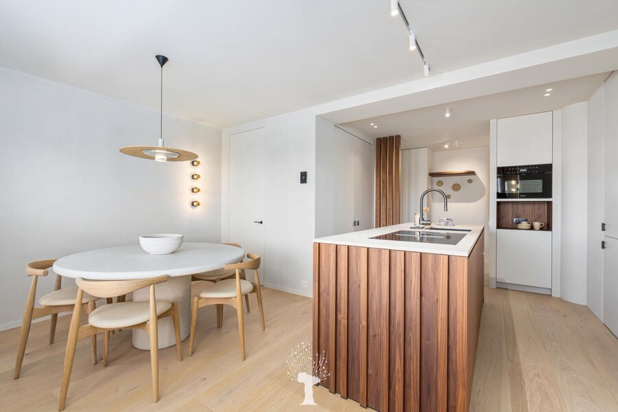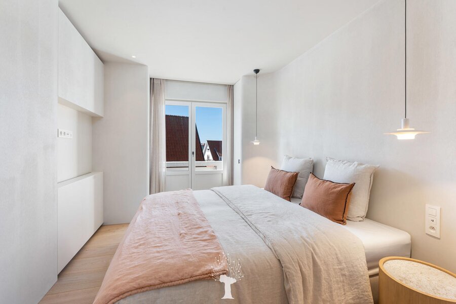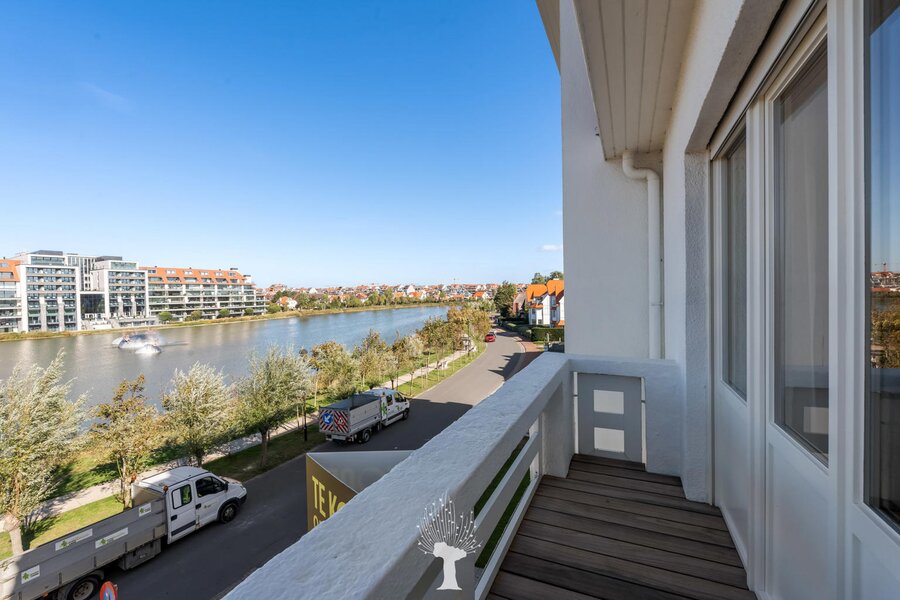 Appartement de coin luxueusement rénové dans une petite villa-résidence de standing avec de superbes vues sur le Lac de la Victoire ("Zegemeer"). Composition : hall d'entrée avec vestiaire et toilette. tres beau séjour-salle à manger lumineux avec vues dégagées sur le lac et ouvrant sur agréable terrasse. Cuisine Américaine entièrement équipée. Chambre des maîtres avec sa salle de douche attenante. 2ème et 3ème chambre à coucher. Salle de douche pratique. Au 3ème étage de la résidence: 4ème chambre à coucher. Possibilité d'achat d'un grand box de voiture avec cave dans la résidence. Achèvement luxueux. Visites volontiers après rendez-vous en nos bureaux.
