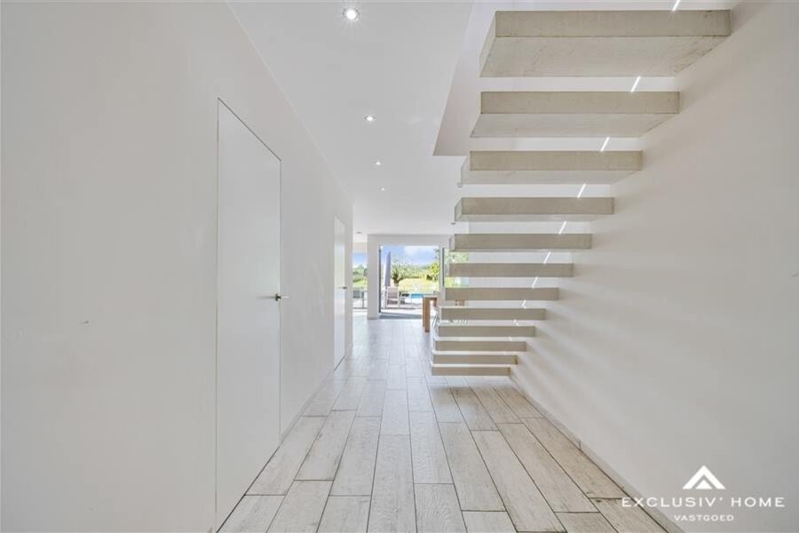 Construite avec des matériaux de haute qualité et des techniques de pointe, cette villa moderne a été finie dans les moindres détails. Grâce à une architecture bien pensée — une façade avant fermée en contraste avec une façade arrière ouverte et vitrée — la lumière naturelle inonde chaque espace de vie et crée un lien harmonieux avec la nature environnante.