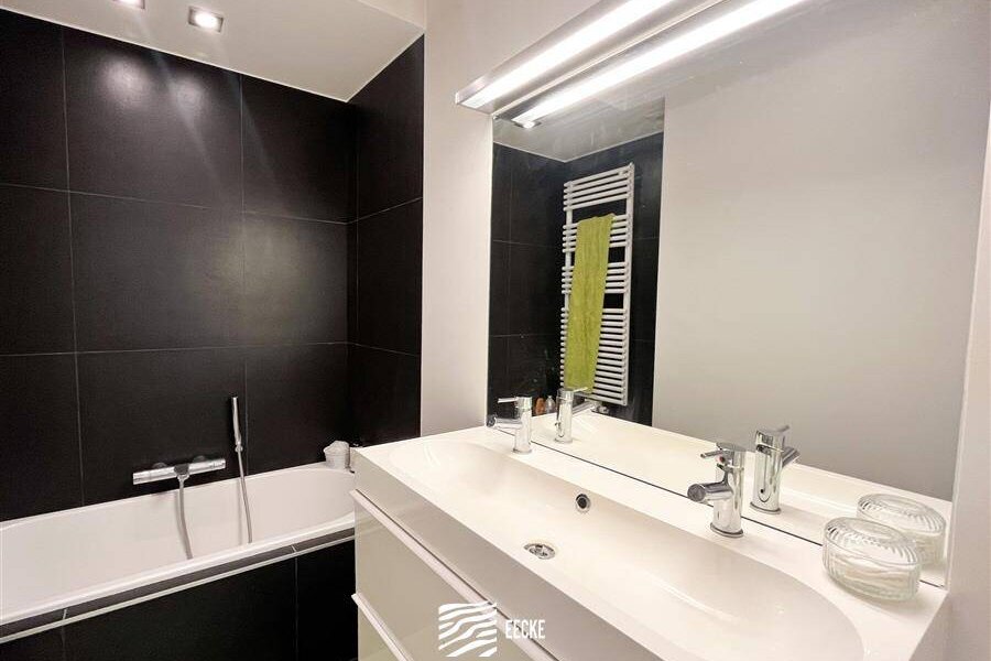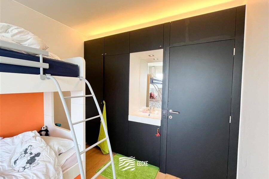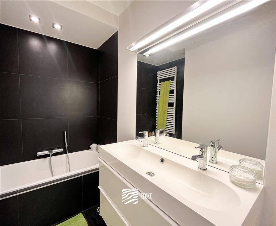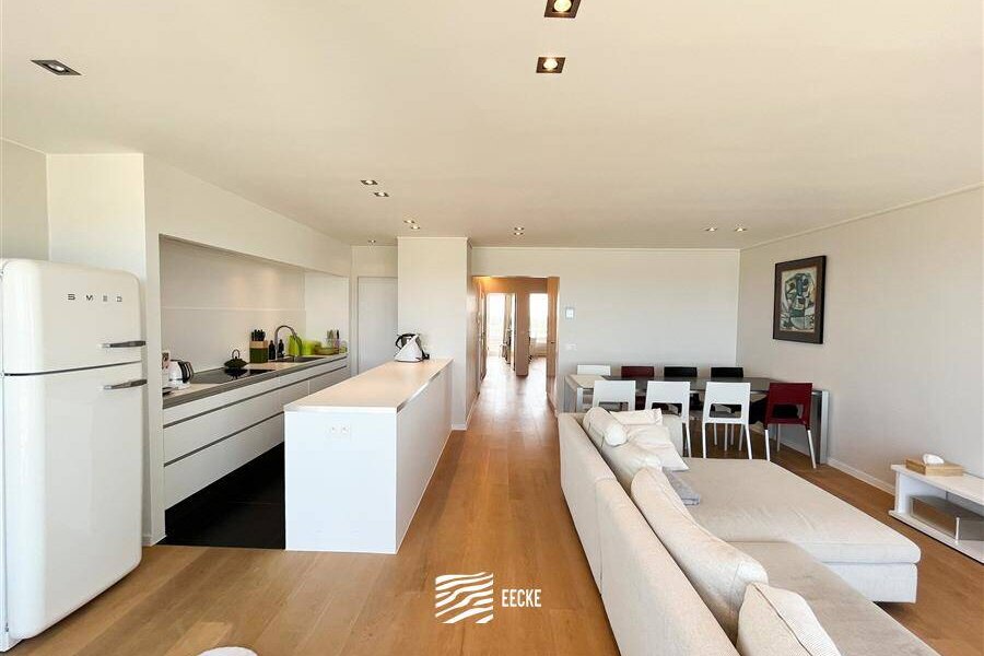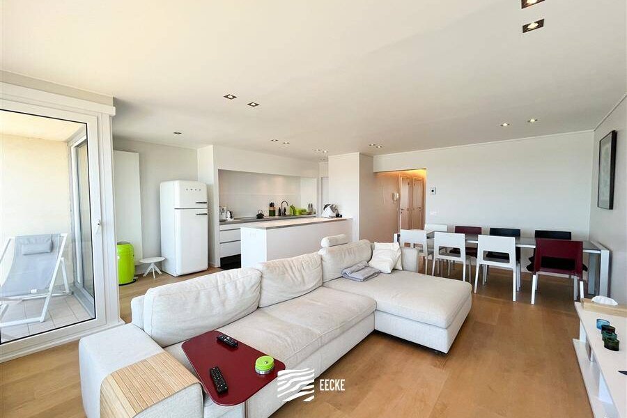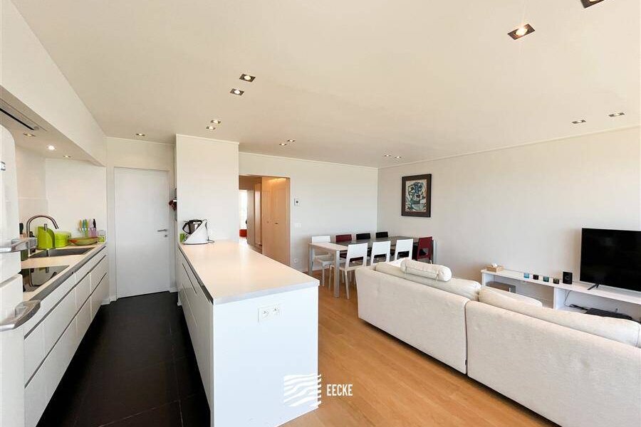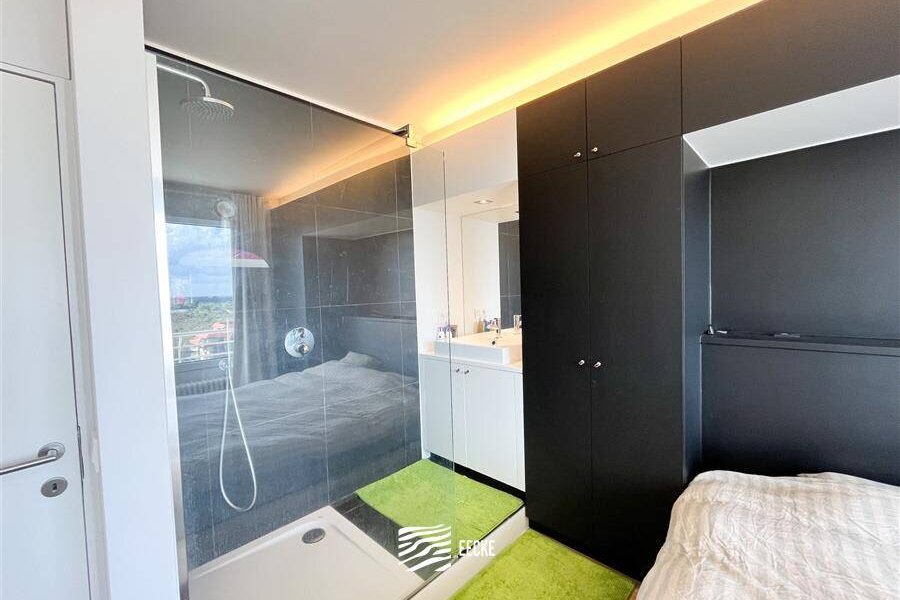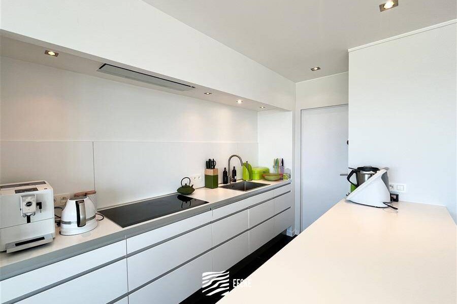 Res. Strand Palace 0904 - Appartement spacieux avec vue fantastique sur la mer depuis le neuvième étage - Rénovation moderne et de qualité - Hall d'entrée avec toilettes invités - Séjour avec terrasse intégrée donnant sur le front de mer - Cuisine équipée ouverte - Débarras attenant - Salle de bains avec baignoire et double lavabo - Chambre avec salle de douche en suite - Chambre avec lavabo - Toutes deux donnant sur la terrasse ensoleillée arrière - Cave privée - Possibilité d'achat d'un garage