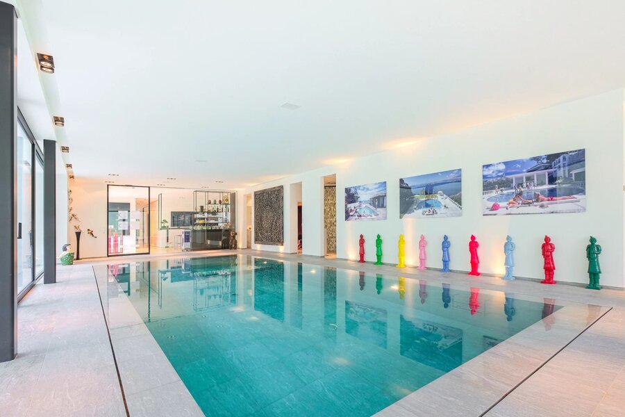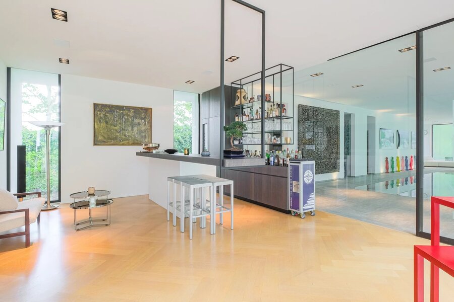 Dans le quartier recherché de l'Observatoire, sur un terrain de fond de 32ares35ca, superbe villa contemporaine de 1.411 m² construite en 2016 avec jardin paysagé et piscine intérieure. Elle se compose comme suit: au rez-de-chaussée: Hall d'entrée avec vestiaire et toilettes invités, bureau, spacieux salon et salle à manger, cuisine super équipée et arrière cuisine professionnelle, espace bar équipé, piscine intérieure avec vestiaire, douche, toilettes, sauna. Au 1er étage : Salon tv, 4 chambres avec leur salle d’eau attenantes. Au 2ème étage : suite parentale avec 2 dressings, une salle de bains et une salle de douches. Au rez-de-jardin : conciergerie avec salon, salle à manger et cuisine américaine, chambre et salle de bains, Salon Home cinéma, salle de fitness, cave à vin climatisée, buanderie, local technique et caves de rangement. Également : ascenseur, double vitrage, garage 2 voitures, chaudière à condensation gaz, domotique, alarme et système de vidéo surveillance, électricité conforme. PEB :C+. A découvrir sans plus tarder !