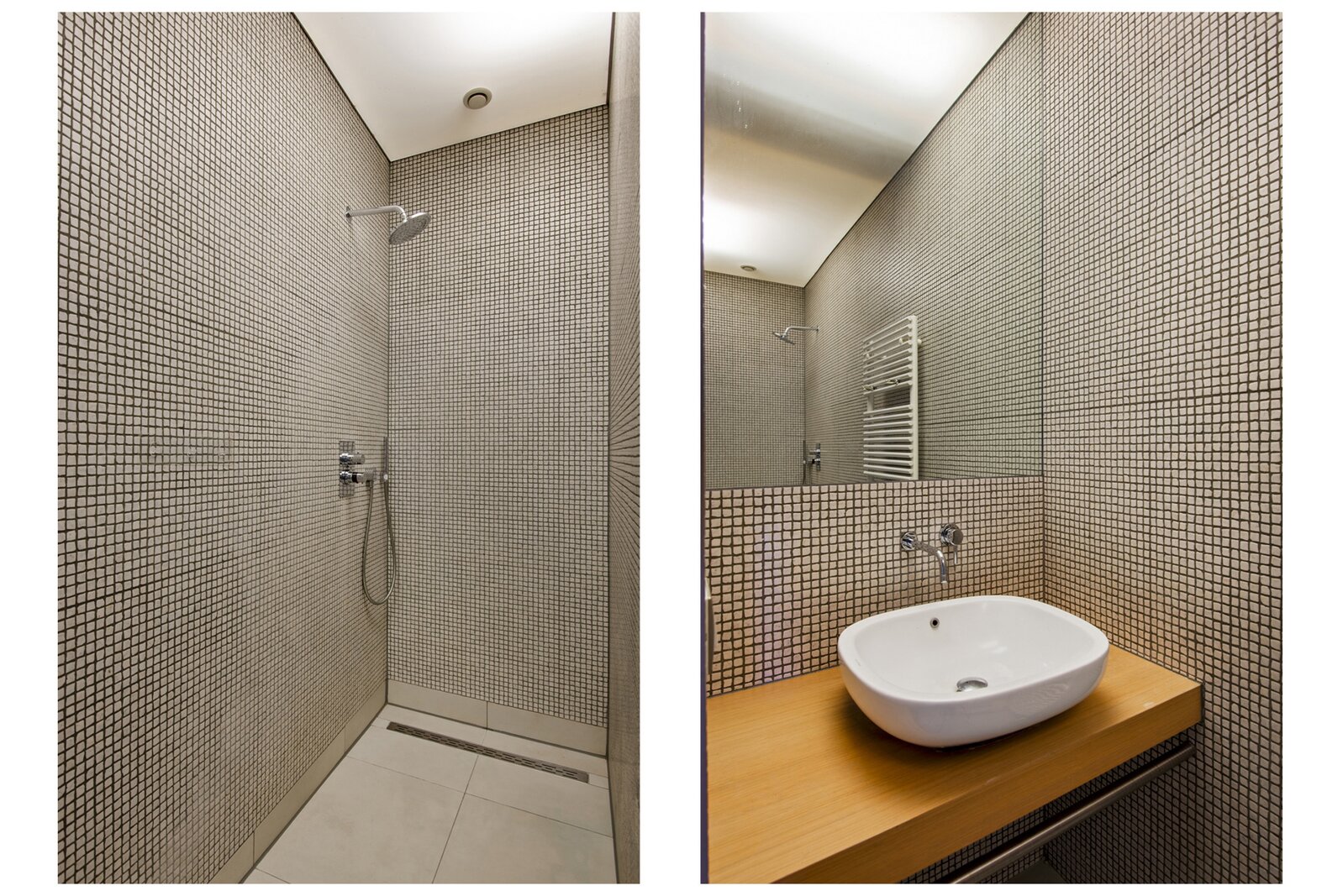 Indeling: Inkomhal met knappe plafondhoge ingemaakte kasten, berging en gastentoilet, met links de master – ensuite badkamer met ligbad, inloopdouche en toilet – mooie dressing. Langs de rechterzijde treffen we twee ruime kamers met ingemaakte kastten en een tweede doucheruimte. De leefruimte met open keuken meet ruim 120 m² en baadt in het licht dankzij raampartijen rondom. Naast de keuken een tweede berging.