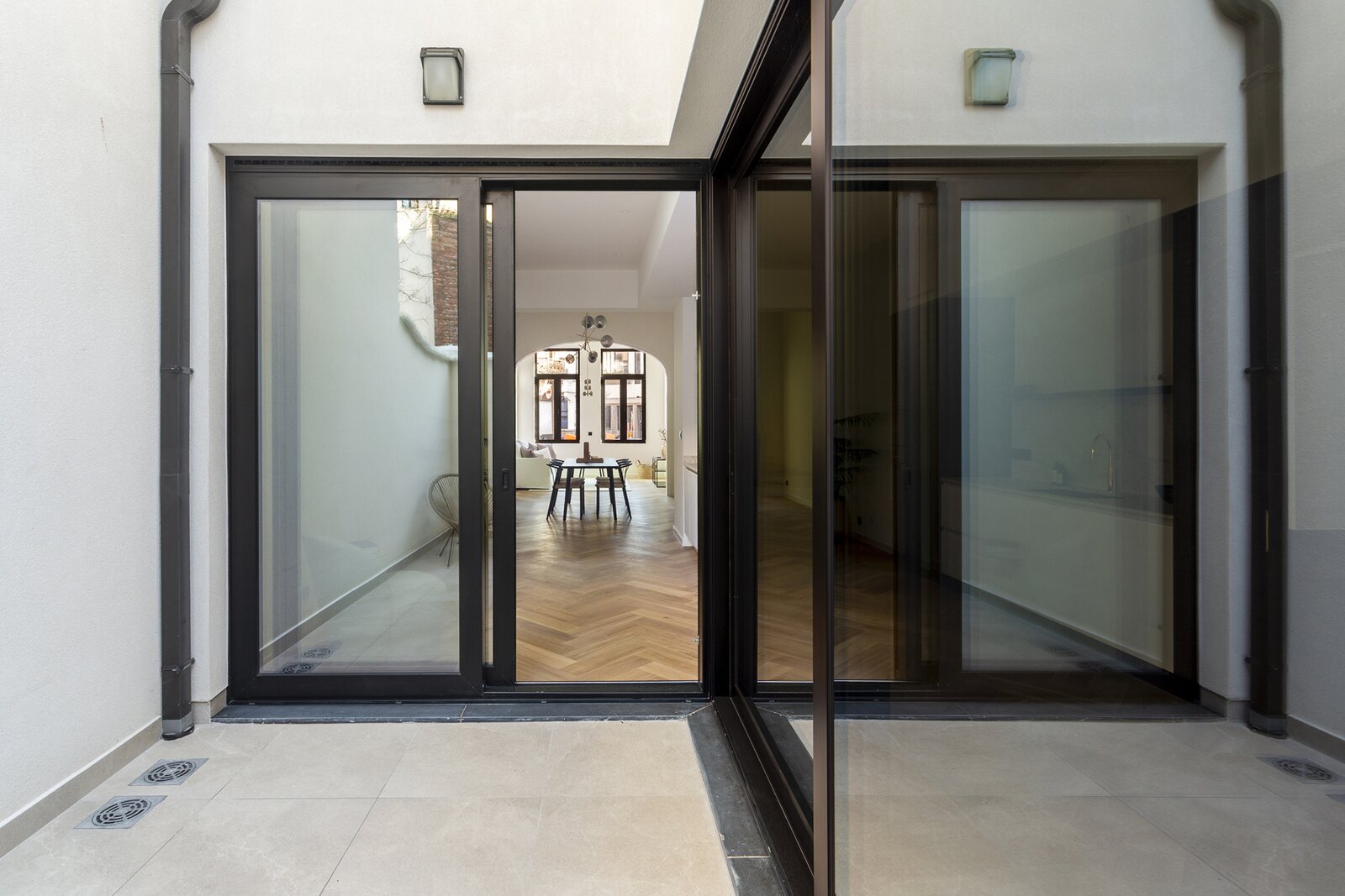 De leefruimte is uitzonderlijk ruim en baadt in natuurlijk licht, dankzij de grote raampartijen en de open indeling. Deze sluit naadloos aan op een luxueus uitgeruste keuken, voorzien van hoogwaardige materialen en toestellen, ideaal voor wie houdt van koken en entertainen. Vanuit de keuken is er toegang tot een aangename en stijlvolle buitenruimte, perfect om tot rust te komen in alle privacy.