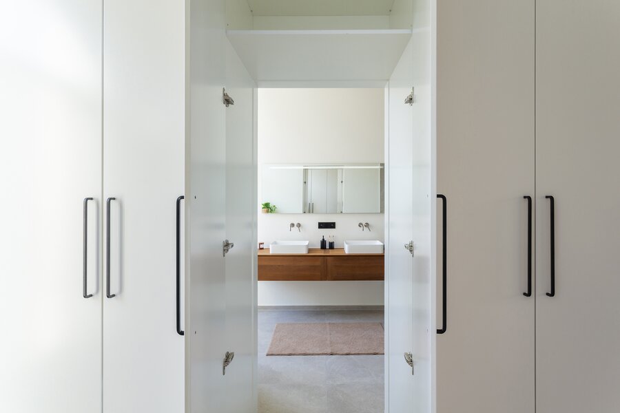 Op de eerste verdieping bevindt zich een royale master bedroom die indruk maakt door haar lichtinval, hoge plafonds en directe toegang tot een privé terras. Aansluitend vindt u een ruime dressing en een magnifieke ensuite badkamer met dubbele lavabo, toilet en een royale inloopdouche, een ware hotelsuite-ervaring.
