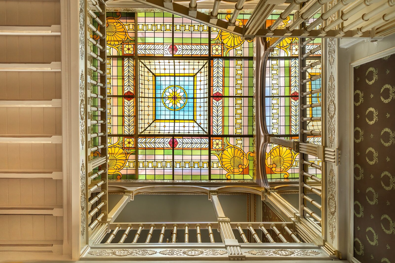 Au bel-étage, un hall raffiné mène au salon principal. Au 1er étage, la salle à manger occupe l'ancien salon chinois et communique avec la cuisine dotée d'un fourneau La Cornue. Le 2e étage abrite la suite parentale (chambre de 23 m² et salle de bain de 17 m²). Le 3e étage propose deux chambres (14m2 et 13m2), chacune avec salle d’eau. Au 4ème étage , une pièce idéale pour un bureau ou un espace invité et une vaste terrasse avec une magnifique vue sur le Square Ambiorix. Le demi-sous-sol comprend une cuisine secondaire et un espace polyvalent. La cage d’escalier sous verrière et les passerelles vitrées offrent une circulation baignée de lumière.