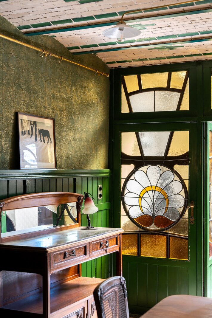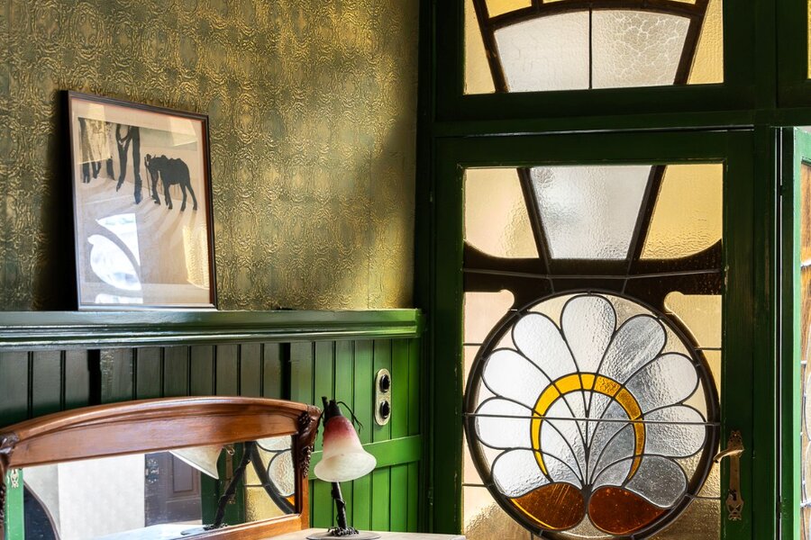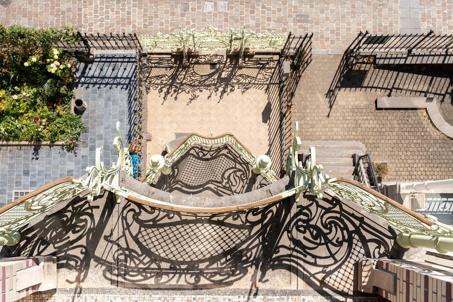 Sa façade spectaculaire, large de quatre mètres mais richement ornée de briques polychromes et de ferronneries florales, incarne un style souvent qualifié d’« Art nouveau baroque"