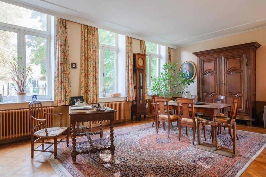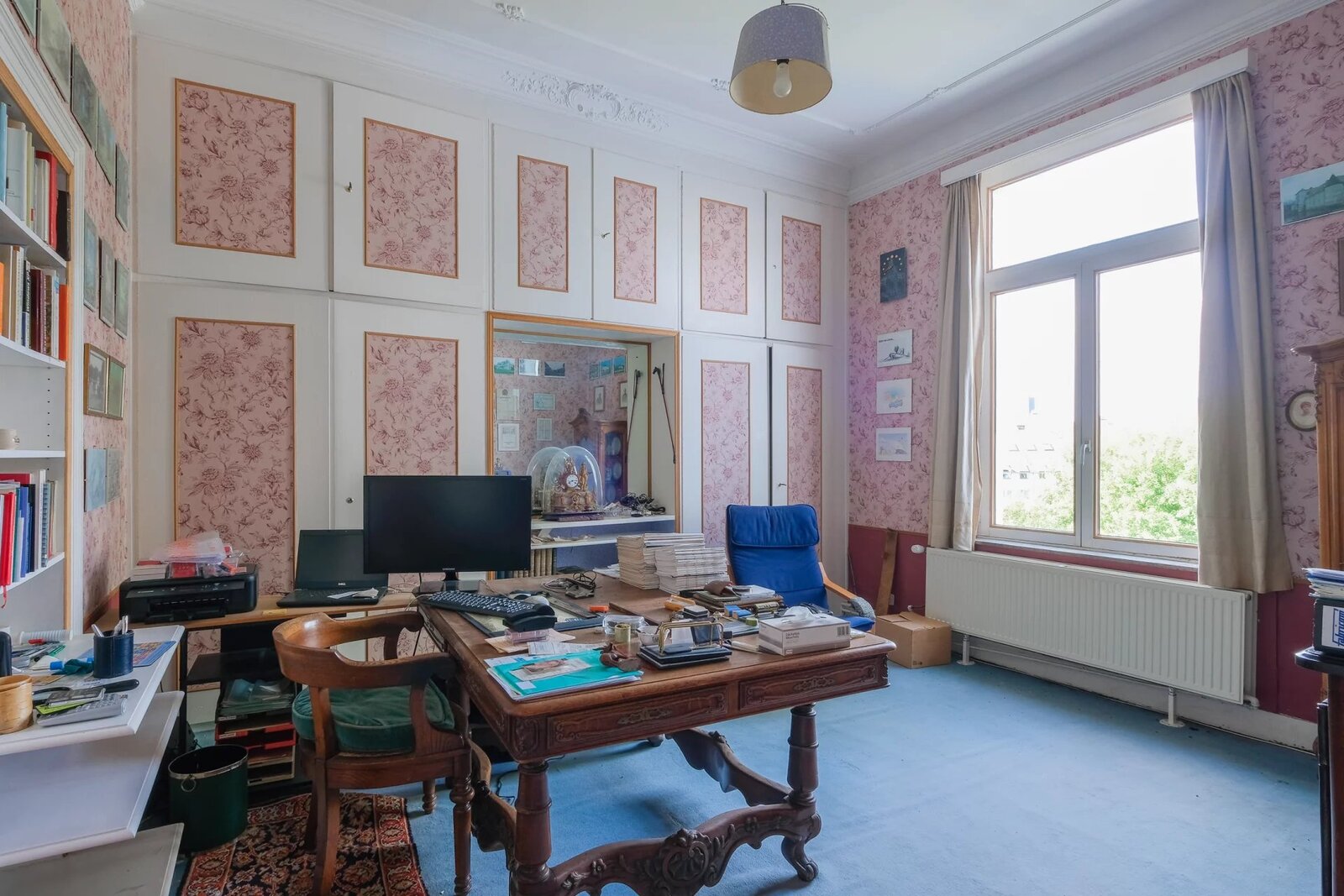 Kersbeek : maison 3 façades de ± 400 m² bruts avec terrasses et jardin orientés Sud et Ouest à rénover. Elle se compose comme suit :au rez-de-chaussée : hall d’entrée de ± 20 m², vestiaire de ± 15 m² et toilette invitée, salon de ± 50.5 m², salle à manger de ± 28 m², cuisine de ± 15 m², accès terrasse de ± 20 m² et jardin de de ± 1.200 m² orientés Sud et Ouest, poolhouse de de ± 30 m² et piscine. Entre-sol : suite parentale composée d’un espace dressing/bureau de ± 13.5 m², salle de bain de ± 8 m², chambre de ± 14 m². Au 1ier étage : 2 chambres de ± 20 m² chacune, une salle de bain de ± 6.5 m². Au 2e étage : 2 chambres de ± 20 m² chacune, un bureau de ± 6.5 m² (anciennement salle de bain). Au Sous-sols : garage de ± 25 m², atelier de ± 16.5 m², local chaudière au mazout de ± 12 m², réserves de ± 19 et 12 m², cave aux pommes de ± 9 m², cave à vin de ± 9.5 m², accès cours de ± 20 et 40 m² et jardin. Également : double et simple vitrage, piscine, nombreux éléments d'origine, électricité non conforme. PEB G. A visiter sans plus tarder !