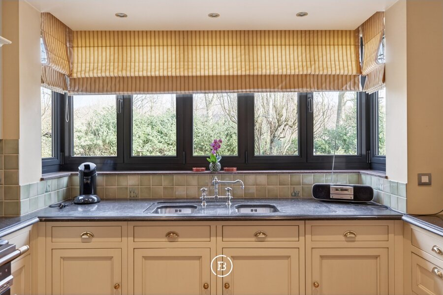 À l’intérieur, la villa séduit par ses volumes exceptionnels et son agencement réfléchi. Le rez-de-chaussée comprend un vaste séjour baigné de lumière, prolongé par une véranda conviviale qui constitue, particulièrement durant les saisons intermédiaires, un espace très agréable pour se détendre.