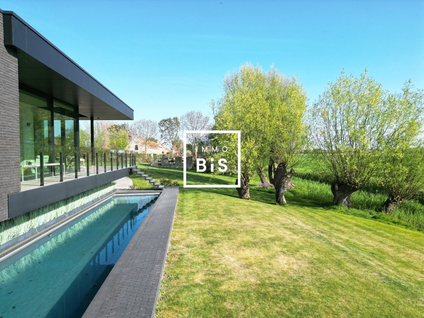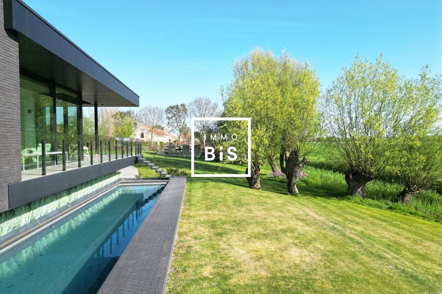 Située à seulement quelques minutes à vélo du Zoute et de la mer, elle bénéficie d'un emplacement privilégié au calme, avec de magnifiques vues ouvertes sur la campagne environnante.