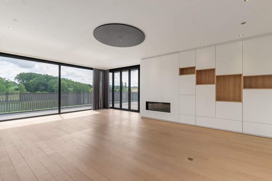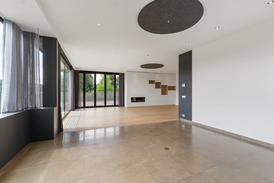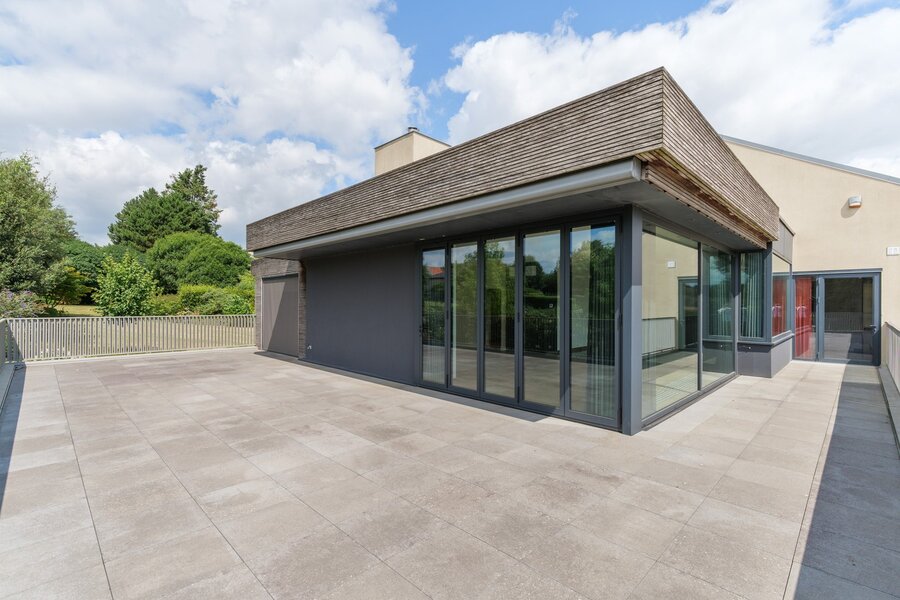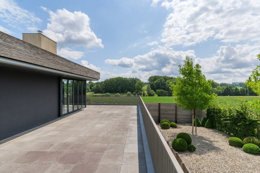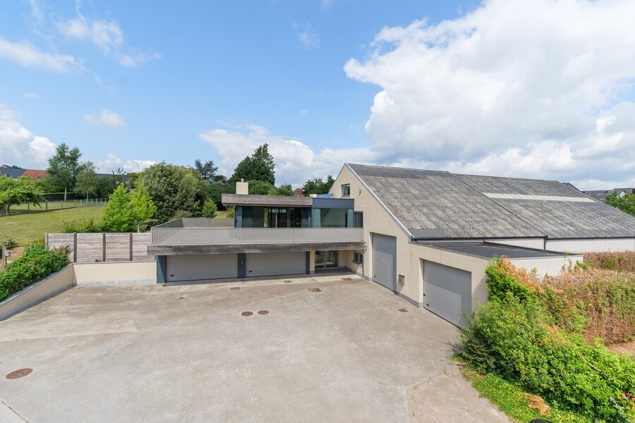 Deze instapklare multifunctionele eigendom bevindt zich in het rustige, groene Mater, een dorpje in het hart van de Vlaamse Ardennen. De eigendom combineert een luxueus afgewerkte gezinswoning met een professioneel gedeelte van ca. 800 m², waardoor het een ideale keuze is voor ondernemers die wonen en werken op één locatie willen combineren. De woning van ca. 250 m² is bijzonder lichtrijk en beschikt over een prachtig zonneterras met adembenemende vergezichten op de omliggende velden. Op het gelijkvloers bevindt zich een ruime inkomhal met vestiaire, een berging, een grote garage met plaats voor vier wagens en een extra ruimte die perfect dienst kan doen als hobby- of vergaderruimte. Via de trap of de lift bereik je de eerste verdieping, waar de leefruimte zich bevindt. De leefruimte met grote raampartijen biedt prachtige zichten op het omliggende landschap. De woonkamer omvat een zithoek met gashaard en ingemaakte kasten, een eetruimte, een leeshoek en een open, volledig uitgeruste keuken. Aansluitend bevindt zich een zuidgericht terras dat rondom de woning loopt. Op dezelfde verdieping bevinden zich twee ruime slaapkamers, elk met een eigen dressing en een en-suite badkamer. De derde slaapkamer ligt op de bovenste verdieping en beschikt eveneens over een eigen badkamer. Extra troeven van de woning zijn onder andere vloerverwarming in de leefruimte, airconditioning in meerdere kamers, een ventilatiesysteem, een mooie siertuin en een eigen pluktuin. Het professioneel gedeelte bestaat uit twee magazijnen, een bureauruimte en bijkomende voorzieningen. Het grootste magazijn heeft een oppervlakte van ca. 514 m². Hier bevinden zich ook een toilet, douche, berging, technische ruimte, aansluitingen voor een keuken, een bureel in twee delen en een mezzanine van ca. 106 m². Daarachter ligt een tweede magazijn van ca. 140 m² en een aparte garage van ca. 40 m². Deze eigendom biedt talloze mogelijkheden voor ondernemers en is ideaal voor wie wonen en werken wil combineren, ruimte zoekt voor een zelfstandige activiteit of eenvoudigweg wil genieten van een ruime, luxueuze woning op een uitzonderlijke locatie.