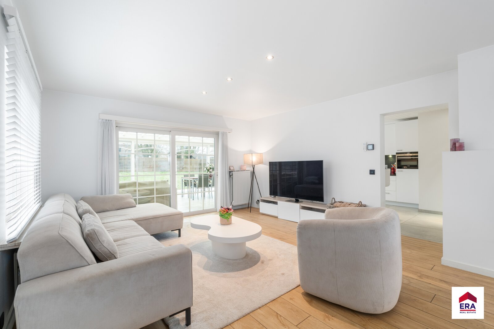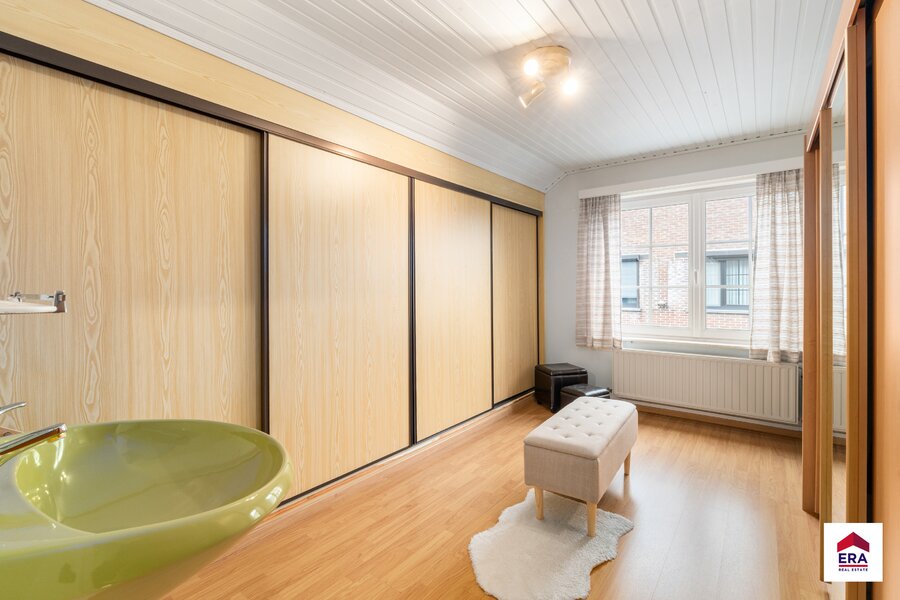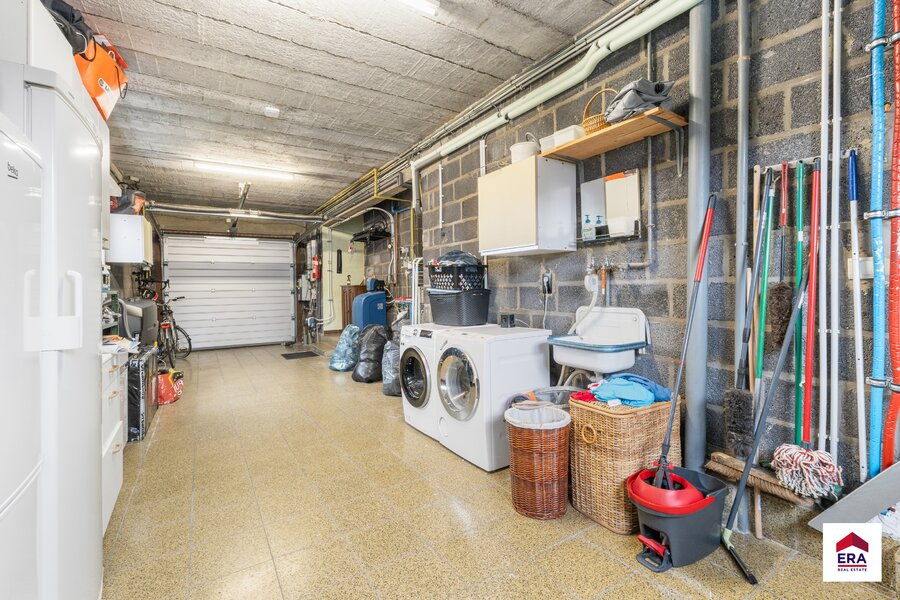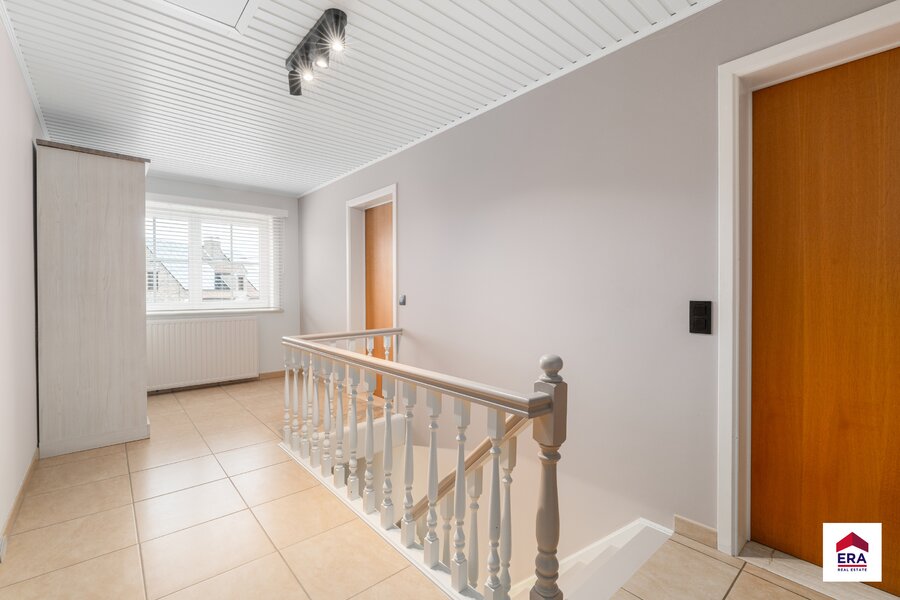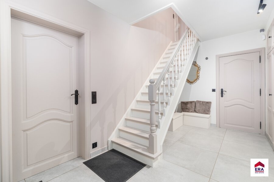 Dès l’entrée, vous êtes accueilli dans le hall d’entrée, équipé de placards intégrés et d’un WC invités séparé. Depuis ce hall, vous accédez au vaste et lumineux séjour, à la cuisine entièrement équipée ainsi qu’au garage. Tant la cuisine que le séjour donnent accès à la véranda, un espace agréable où il fait bon vivre.