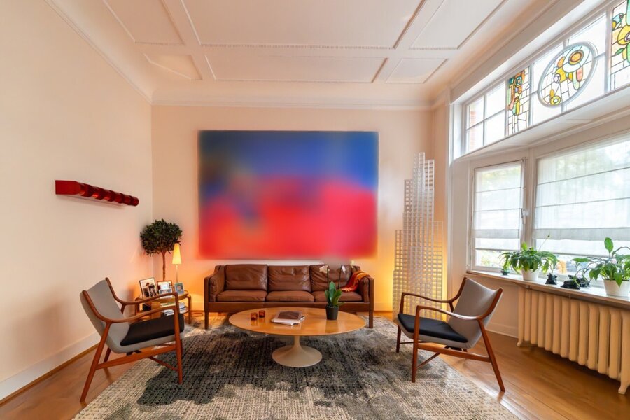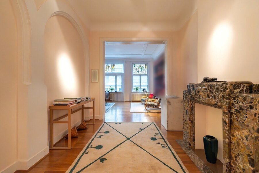 Le rez-de-chaussée s’ouvre sur un hall d’entrée élégant menant à un vaste séjour aux hauts plafonds moulurés, cheminées en marbre et parquets massifs, ainsi qu’à une cuisine Bulthaup donnant accès à un agréable jardin. Les étages se composent de cinq chambres, cinq salles de bains, d’un bureau et de deux dressings. Le grenier offre une belle surface aménageable.
