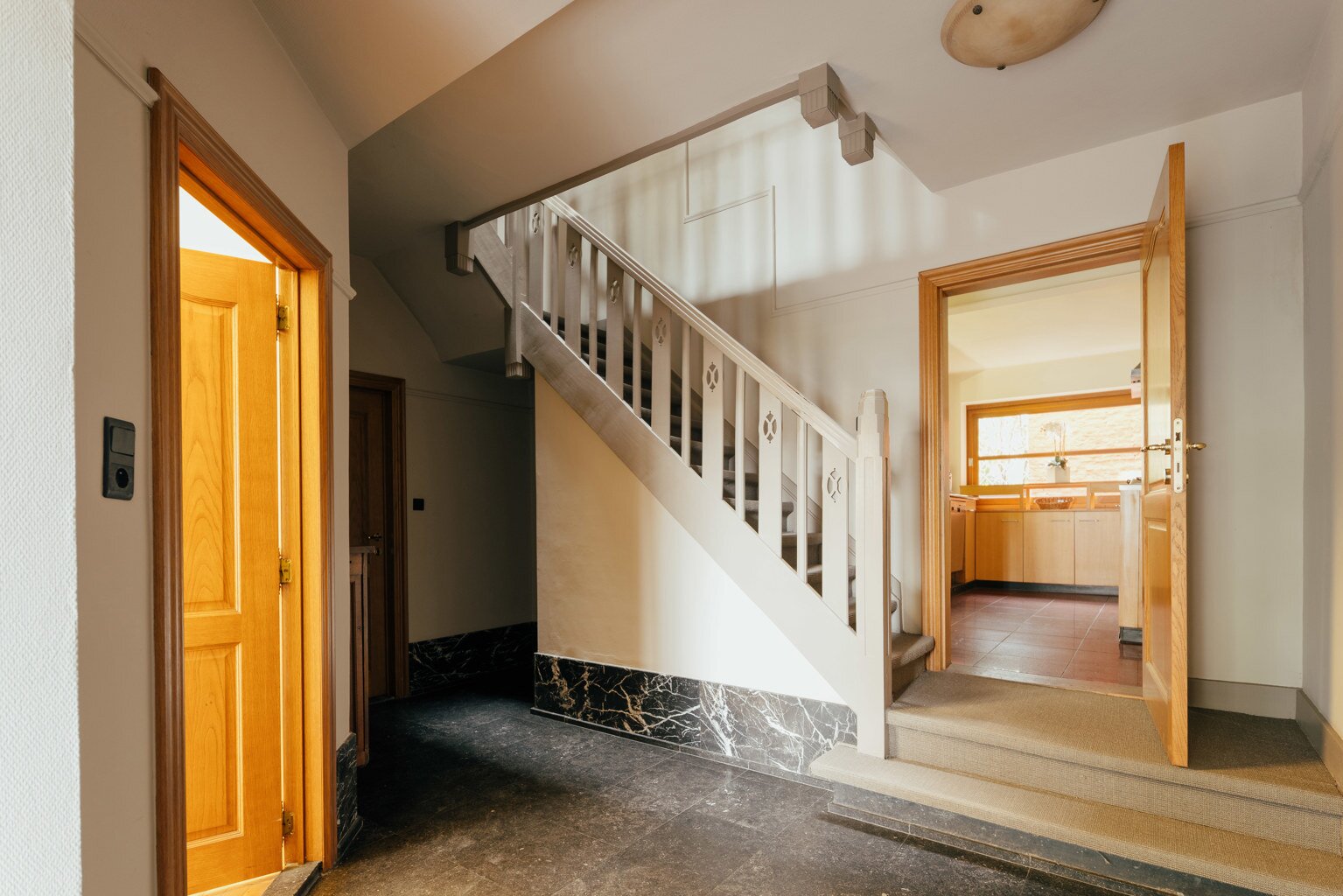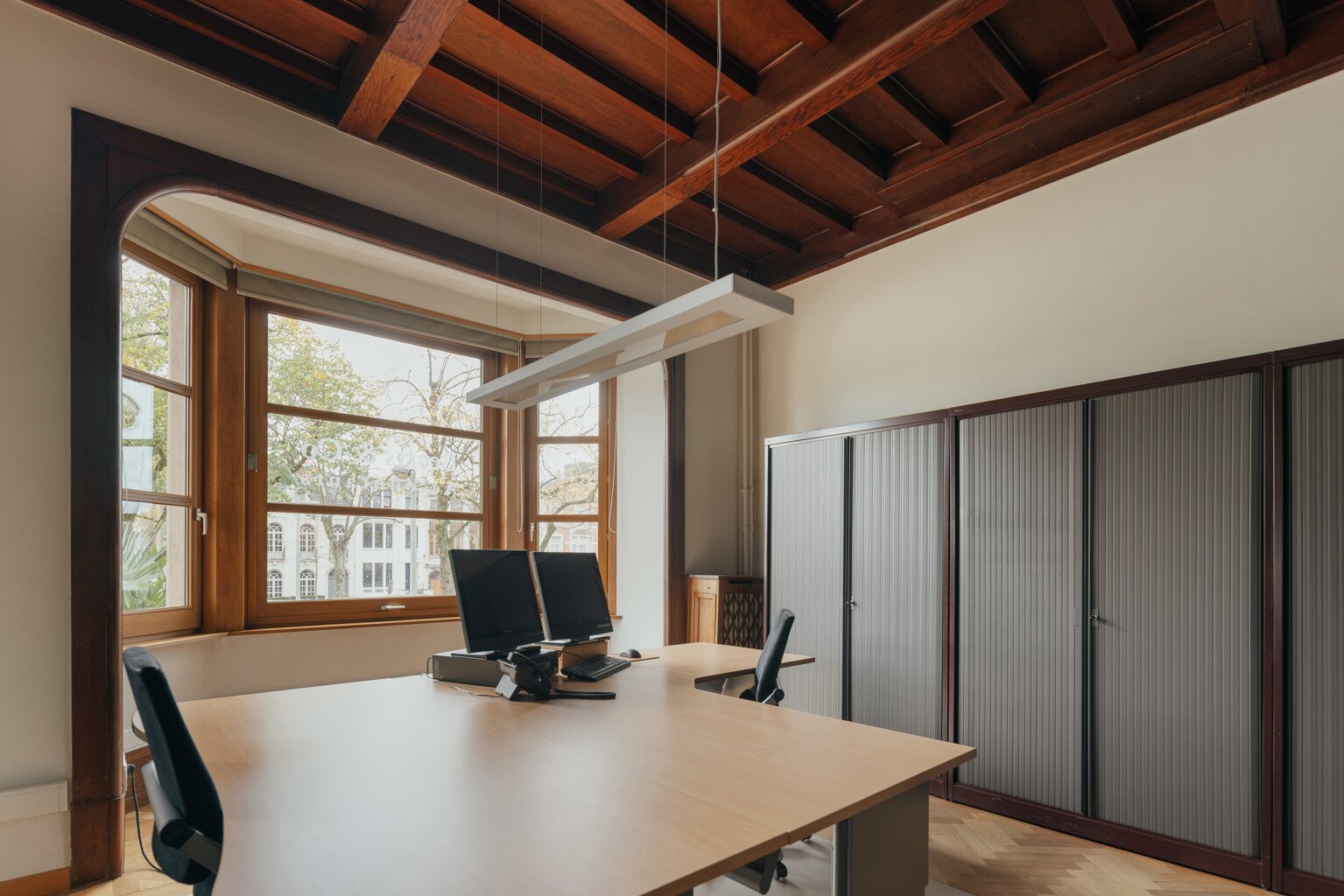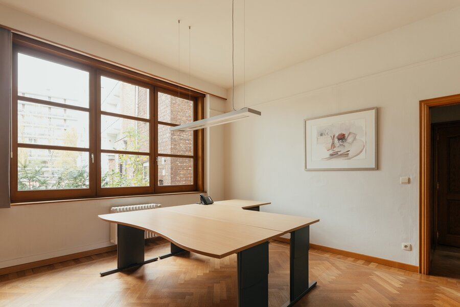 Actuellement utilisée comme bureau, la propriété peut facilement être reconvertie en une charmante maison de ville de 257 m² avec quatre chambres et deux salles de bains, grâce à sa structure résidentielle préservée. Bien que la maison nécessite une rénovation, elle offre un potentiel exceptionnel à ceux qui souhaitent aménager une demeure de caractère selon leur propre style. Une opportunité unique de façonner un bien Art déco d’exception dans un emplacement privilégié, proche des parcs et des axes principaux.