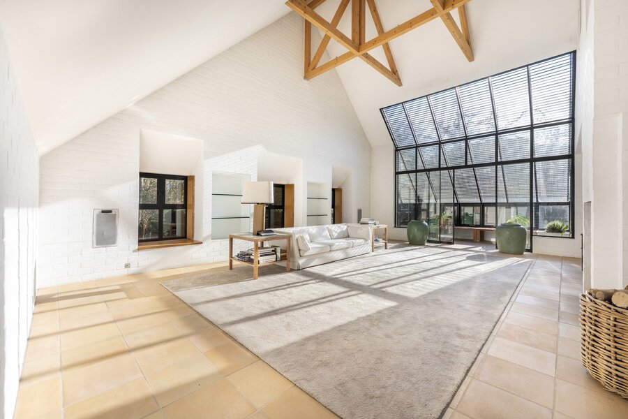 Au rez-de-chaussée se trouve un impressionnant salon avec une grande cheminée, baigné de lumière et caractérisé par une magnifique double hauteur sous plafond. À côté se trouvent une salle de piano séparée et un coin bridge agréable. La cuisine entièrement équipée est située côté jardin et s'intègre parfaitement à la salle à manger et à la véranda, où l'intérieur et l'extérieur se fondent harmonieusement. Le rez-de-chaussée comprend également trois chambres d'enfants confortables et deux salles de bains.