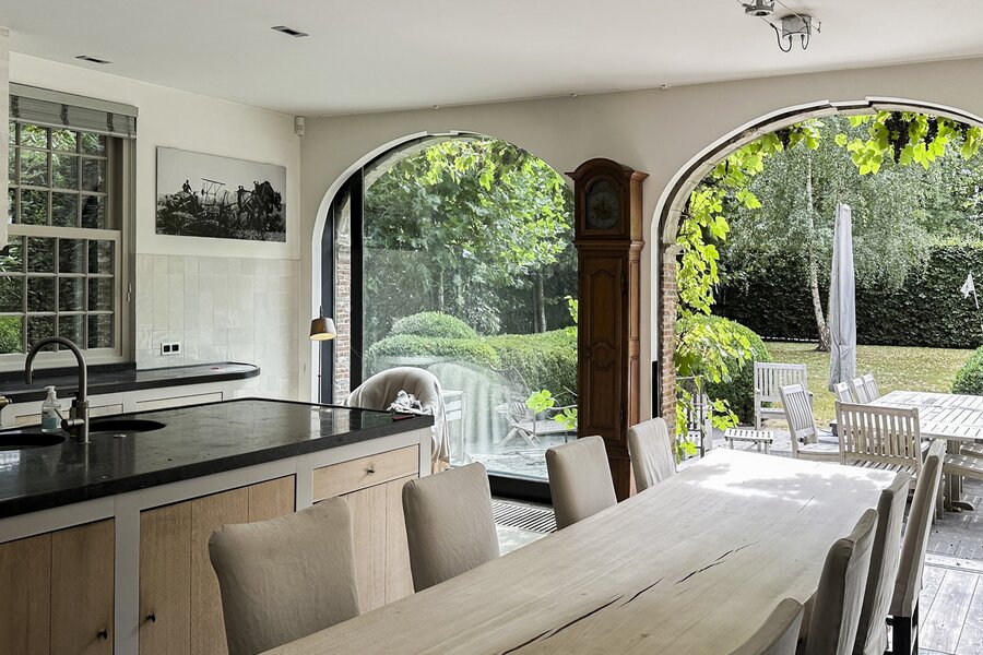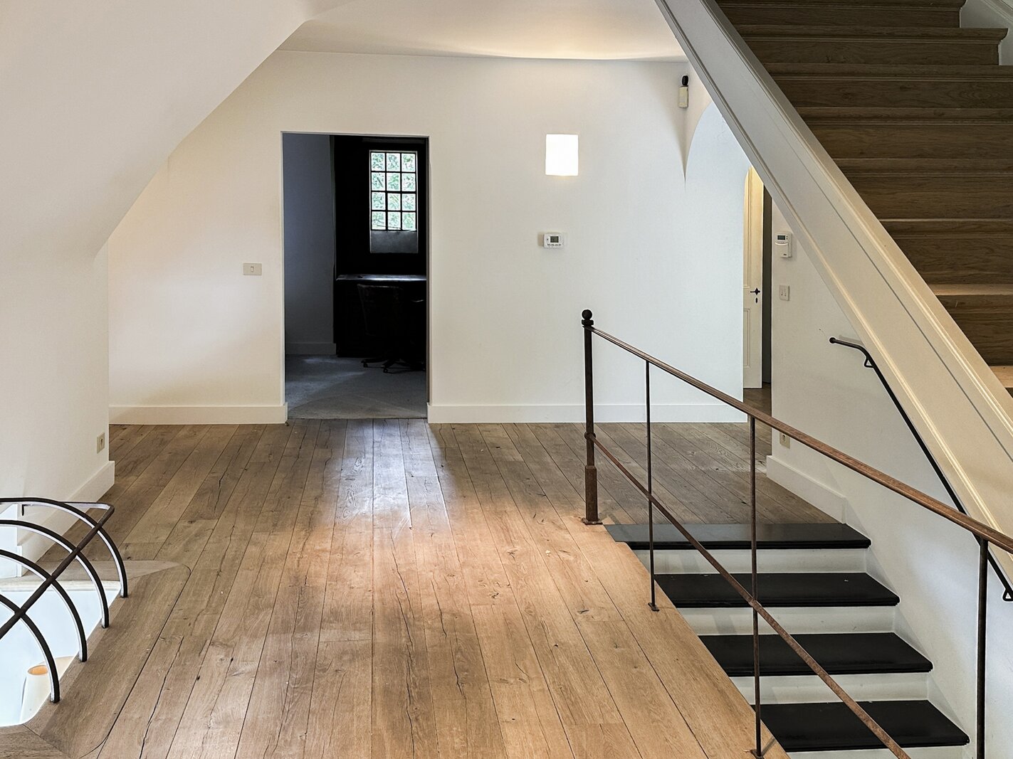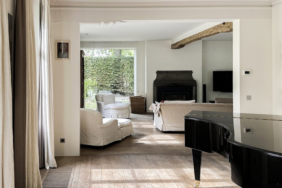 Cette propriété exceptionnelle vous accueille via un élégant hall d’entrée avec vestiaire et toilettes invités. Le rez‑de‑chaussée comprend un vaste espace de vie avec cheminée ouverte et une cuisine entièrement équipée avec cuisinière Lacanche, complétée par un espace de rangement, une buanderie et un garage avec porte automatique. Au premier étage se trouvent la suite parentale avec dressing et salle de bains attenante (douche, baignoire, toilettes et double lavabo), ainsi que trois grandes chambres, une salle de bains supplémentaire, des toilettes séparées et un bureau avec entrée indépendante. Le vaste grenier offre encore de nombreuses possibilités. La maison est entourée d’un jardin ensoleillé offrant calme, intimité et un grand confort de vie.