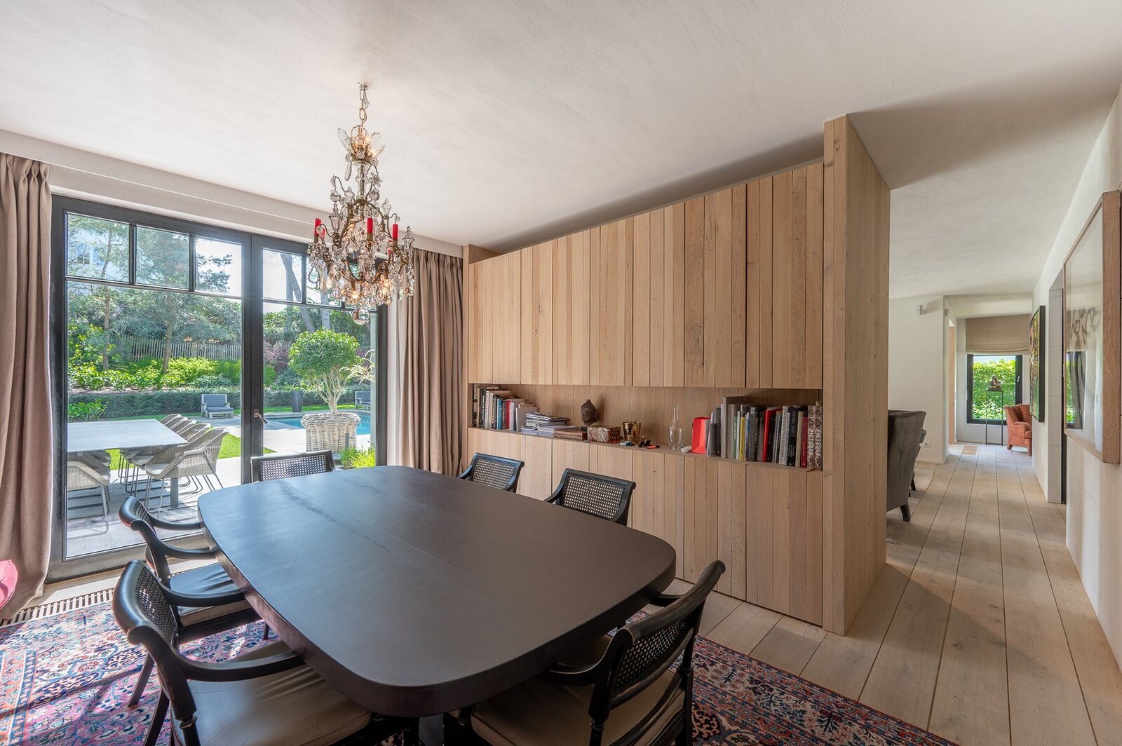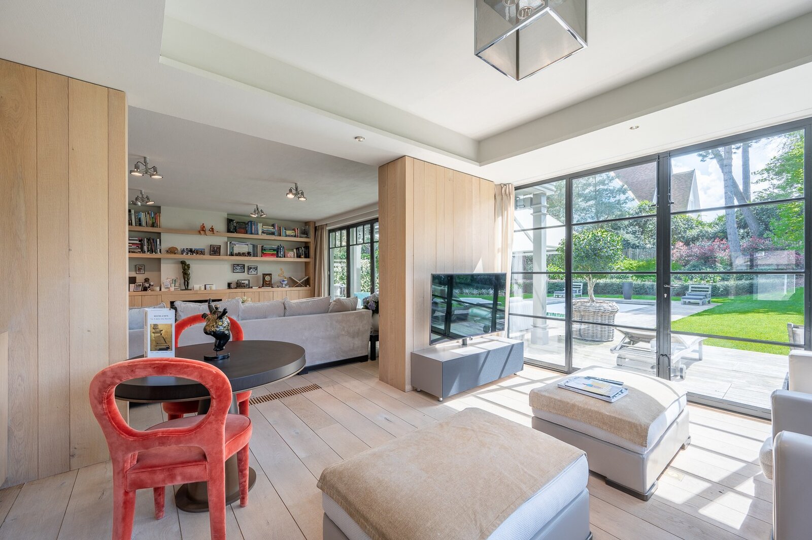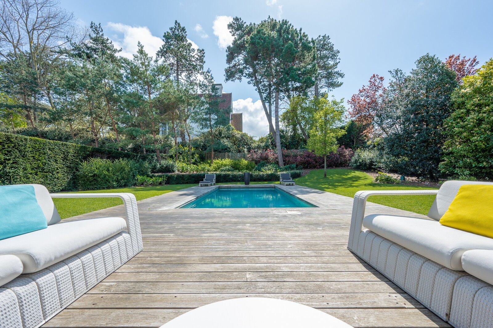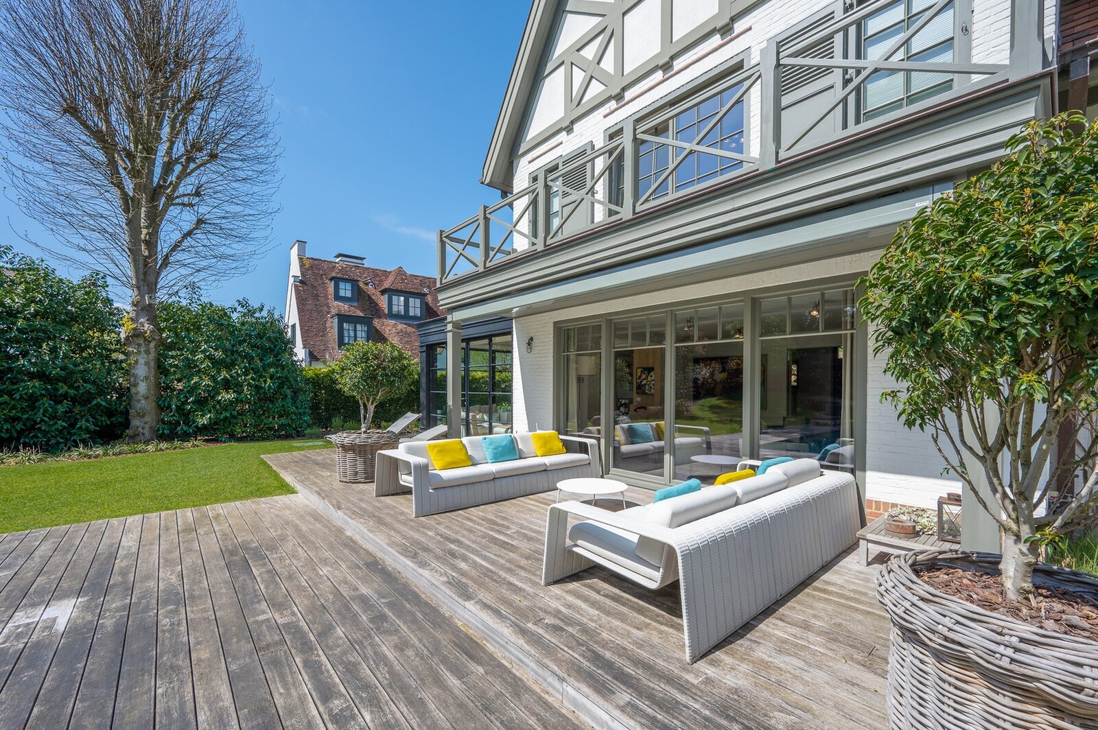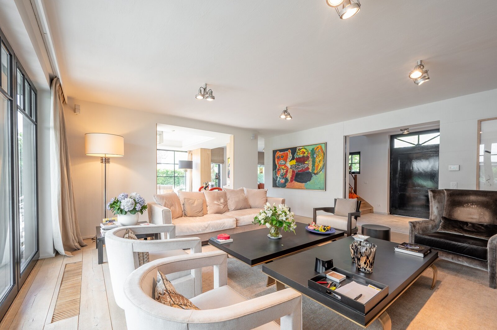 Belle villa située au calme dans un petit sentier au Zoute, à quelques pas des magasins, de la mer et de la plage. Disposition: hall d'entrée avec vestiaire et toilettes invités. Salon très lumineux (cheminée) grâce à de grandes fenêtres donnant sur le jardin ensoleillé et la piscine. Coin TV avec espace bureau. Salle à manger. Cuisine agréable avec coin petit-déjeuner. Au premier étage : chambre principale spacieuse donnant sur la terrasse, dressing et salle de bains attenante (double lavabo, baignoire, douche à l'italienne et toilettes séparées). Bureau/deuxième chambre. 3ème chambre avec salle de douche, cuisine et salon (peut servir comme studio/conciergerie). Au deuxième étage, 2 chambres spacieuses. Salle de bains. La villa dispose d'un sous-sol comprenant une salle de réunion/détente, une buanderie et un local technique. Magnifique jardin paysager avec terrasse et piscine chauffée. Garage intérieur pour deux voitures et grand parking extérieur. Les finitions ont été soignées dans les moindres détails et la villa est équipée d'un système de climatisation, arrosage automatique et alarme. Contactez Immo Knokke Real Estate pour organiser une visite.