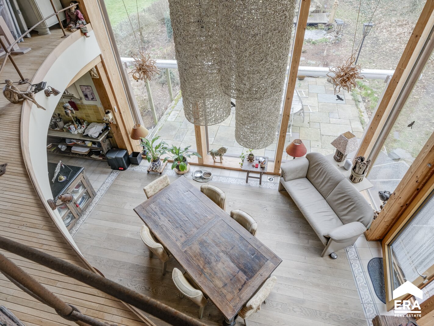De woning is ecologisch en hoogwaardig gebouwd en beschikt over zonnepanelen, warmtepomp, aardwarmtewisselaar (ventilatiesysteeem) en uitstekende isolatie. Met EPC-label A is ze volledig energieneutraal. Elektrische installatie, laadpaal en zonnepanelen zijn conform gekeurd. Inclusief groenestroomcertificaten (€450/cert.) geldig tot 2029.