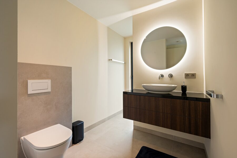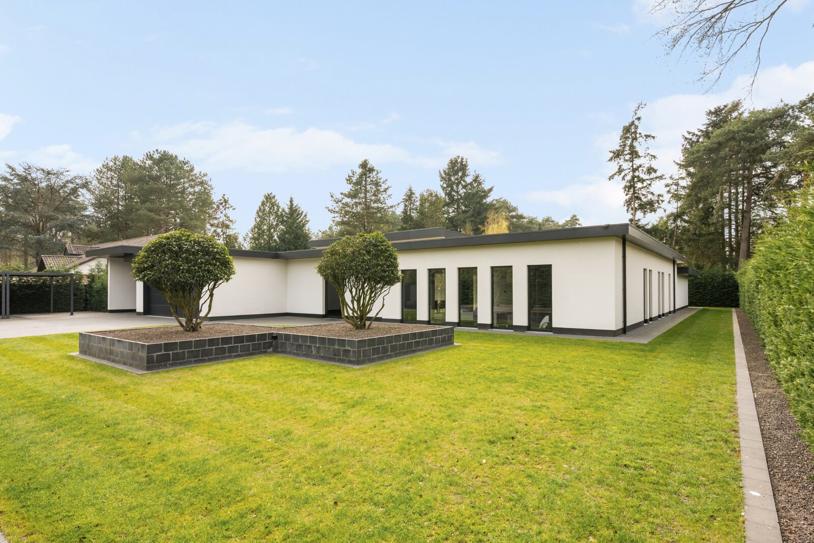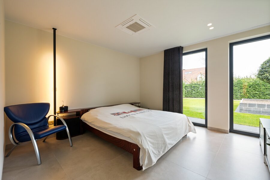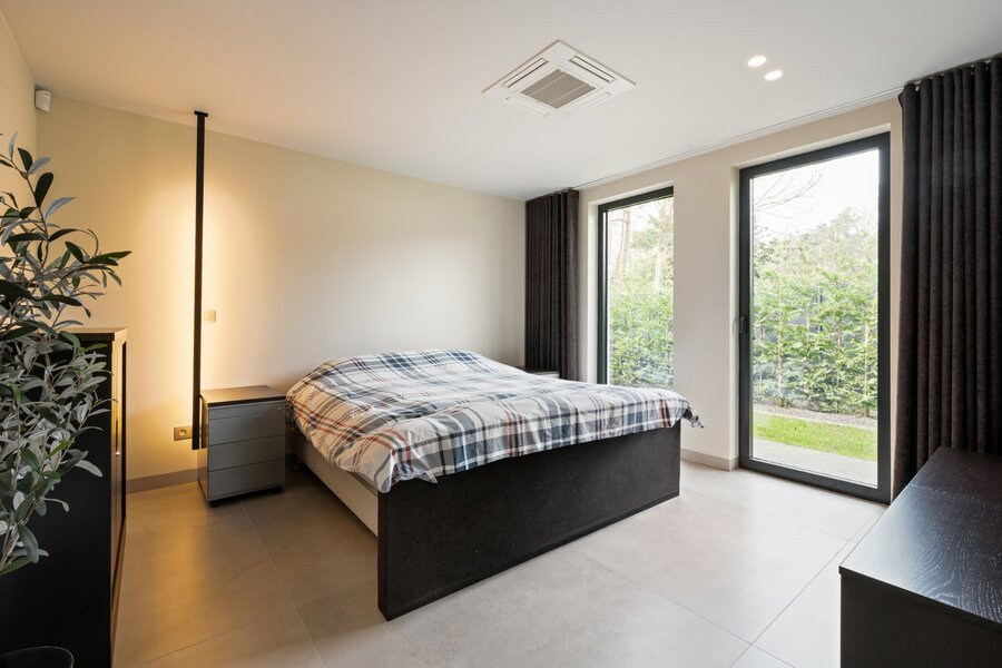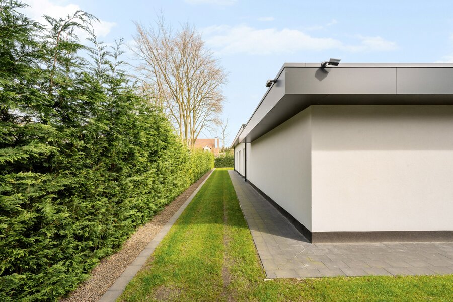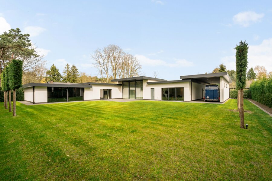 Villa de plain-pied de luxe moderne (2025) située dans un endroit résidentiel et boisé à Pelt (Grote Heide). La maison a été finie avec beaucoup d'attention à la qualité et est équipée de diverses installations technologiques contemporaines. Distribution : Hall d'entrée avec toilettes invités, cuisine de vie de luxe, salon, buanderie / arrière-cuisine, espace bureau, double garage intégré, 4 chambres et 4 salles de bains. Abri voiture double + 1 abri voiture supplémentaire.