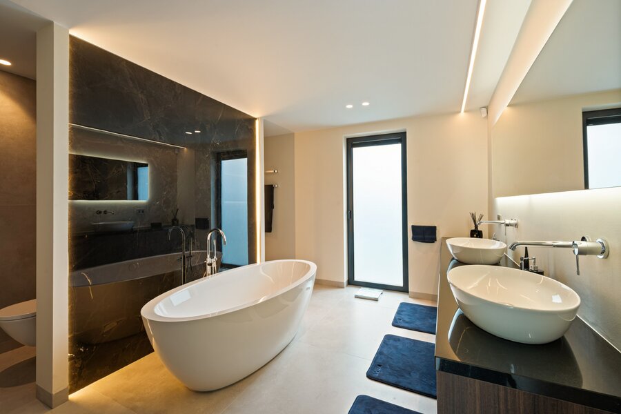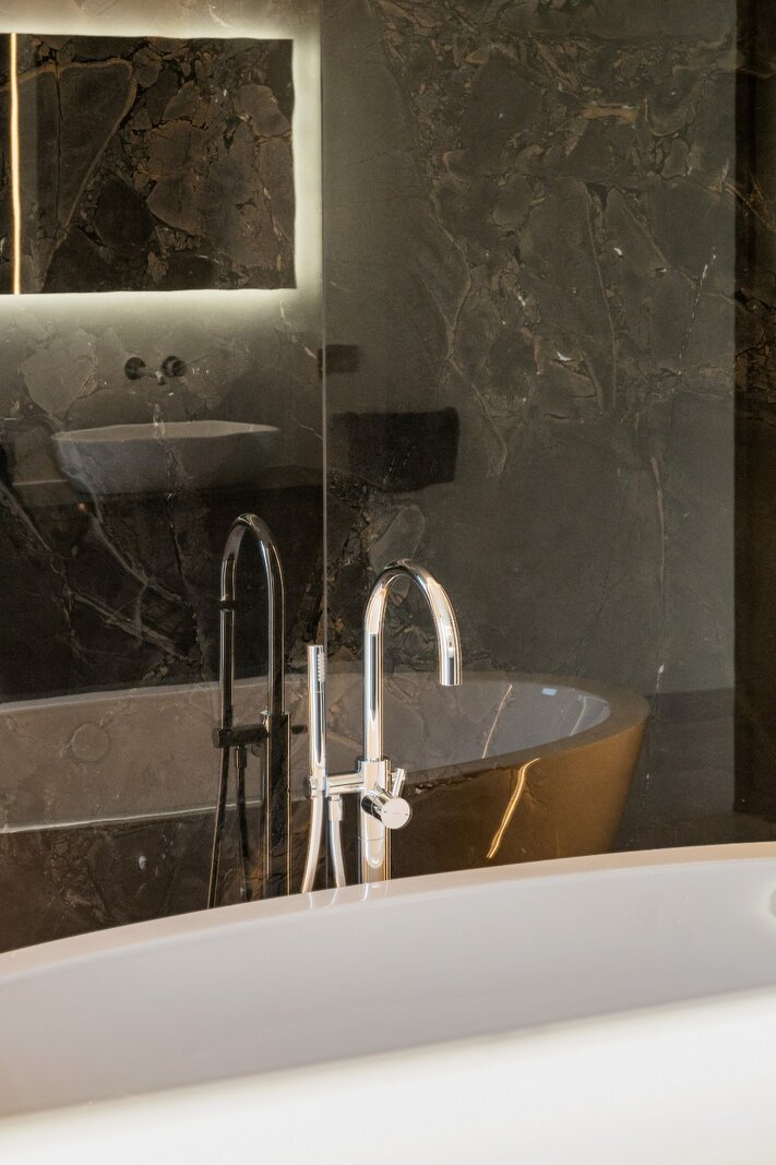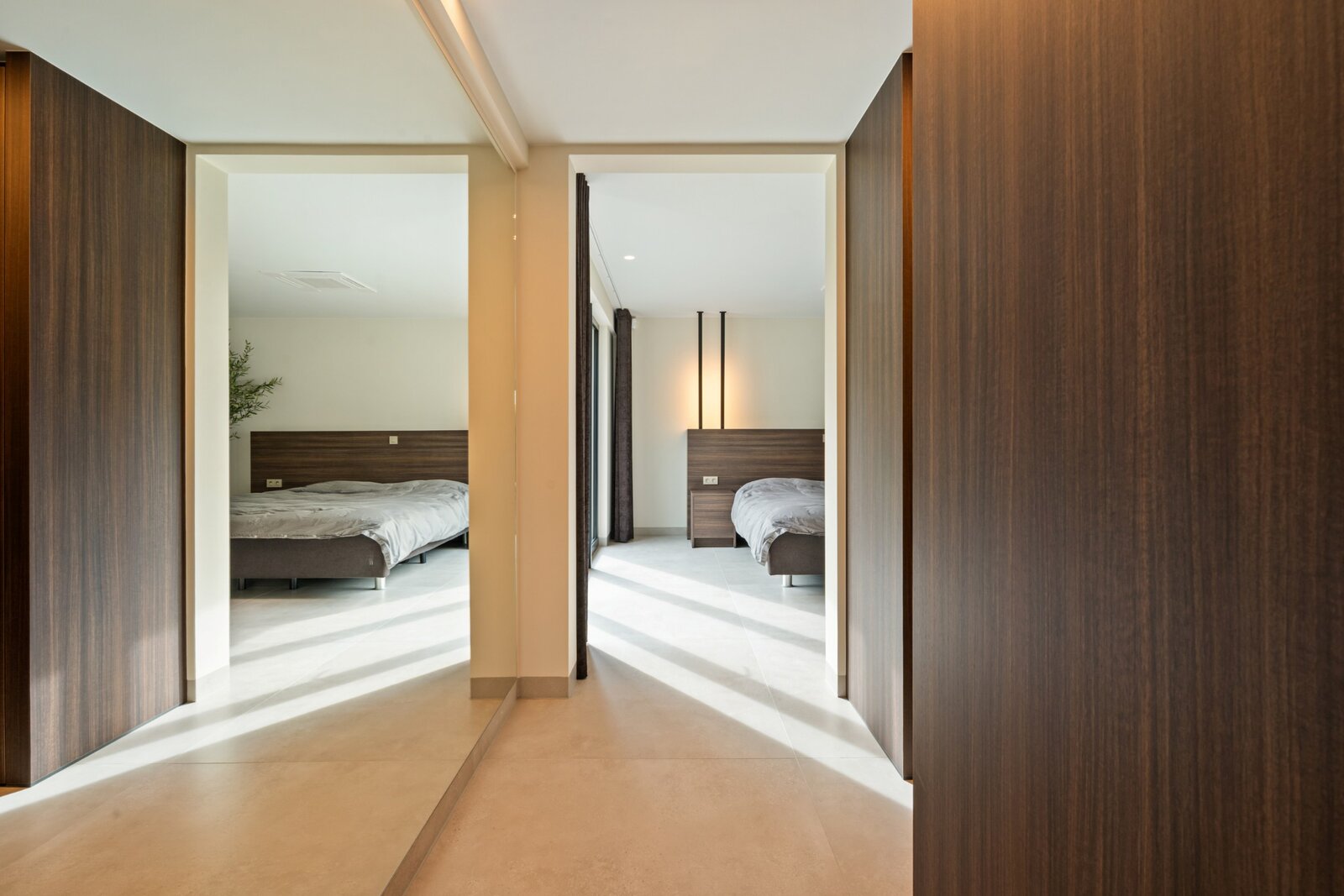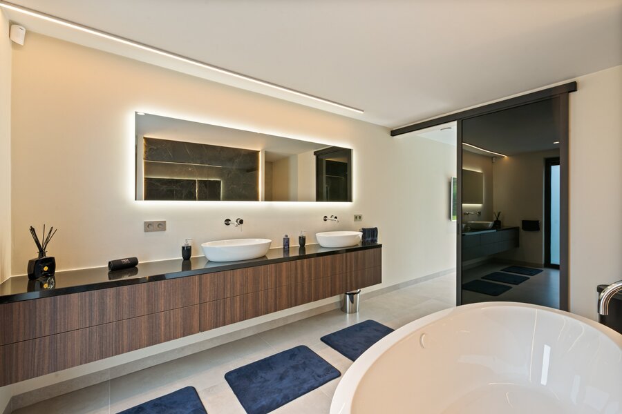 La zone de sommeil comprend une chambre principale avec dressing attenant et salle de bains entièrement équipée, ainsi que 2 chambres d'enfants supplémentaires, chacune avec sa propre salle de douche.