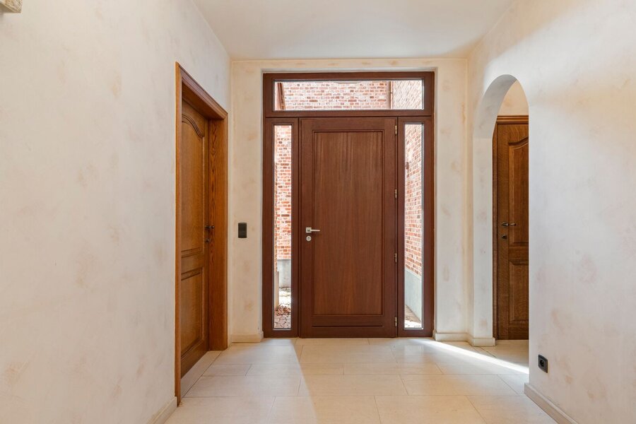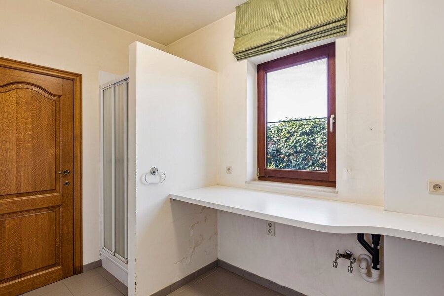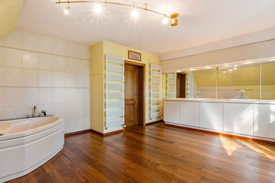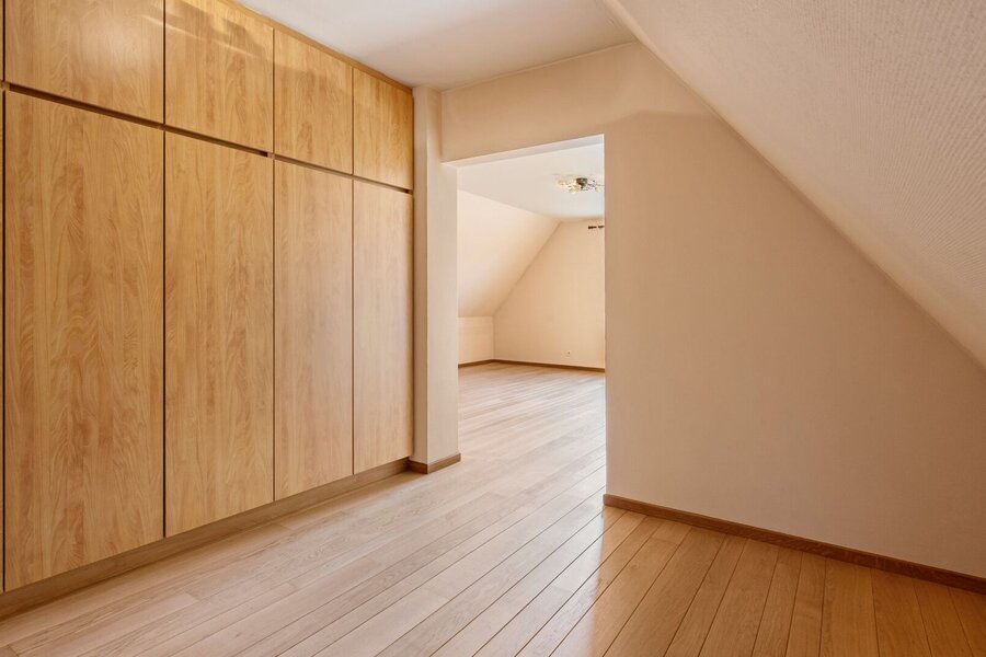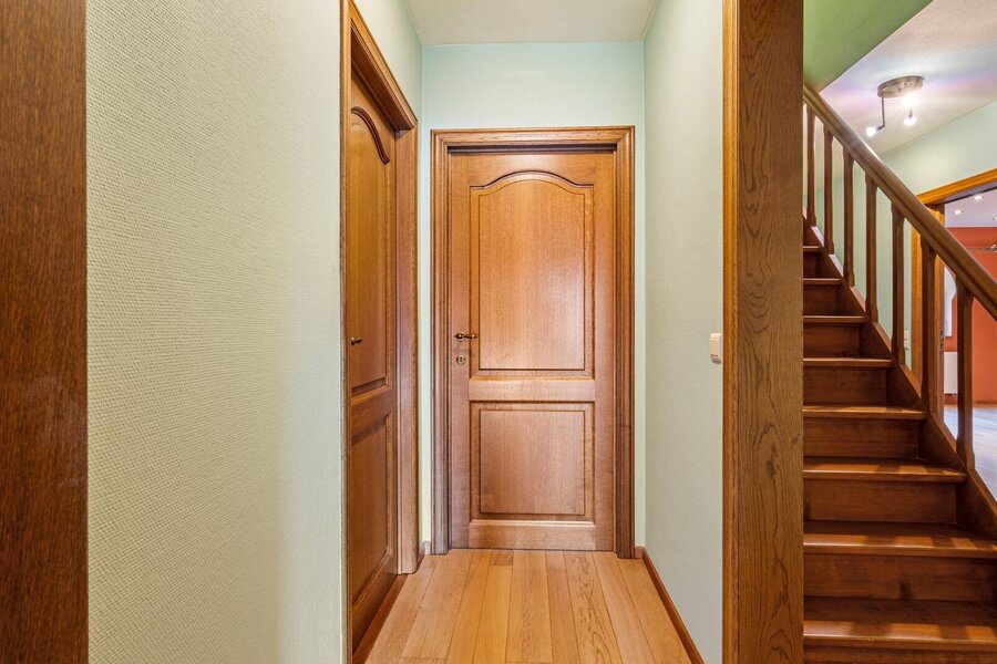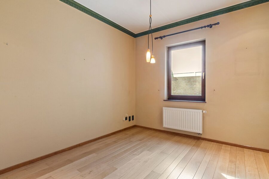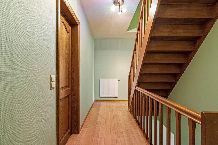 Bij het betreden van de woning wordt u meteen verwelkomd door een warme, authentieke sfeer, versterkt door de prachtige eiken beplankte vloeren en degelijke afwerking. De woning beschikt over vier royale slaapkamers, ideaal voor gezinnen die waarde hechten aan ruimte en privacy, of voor wie extra kamers wenst voor een bureau, dressing of hobbyruimte.