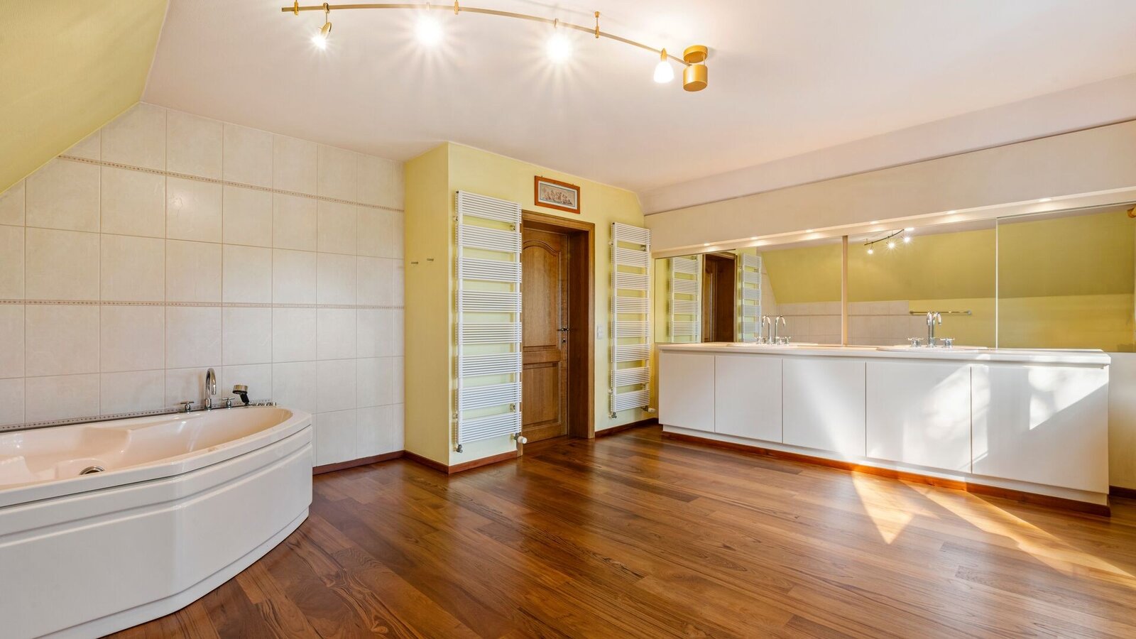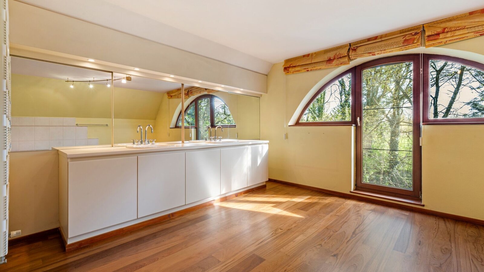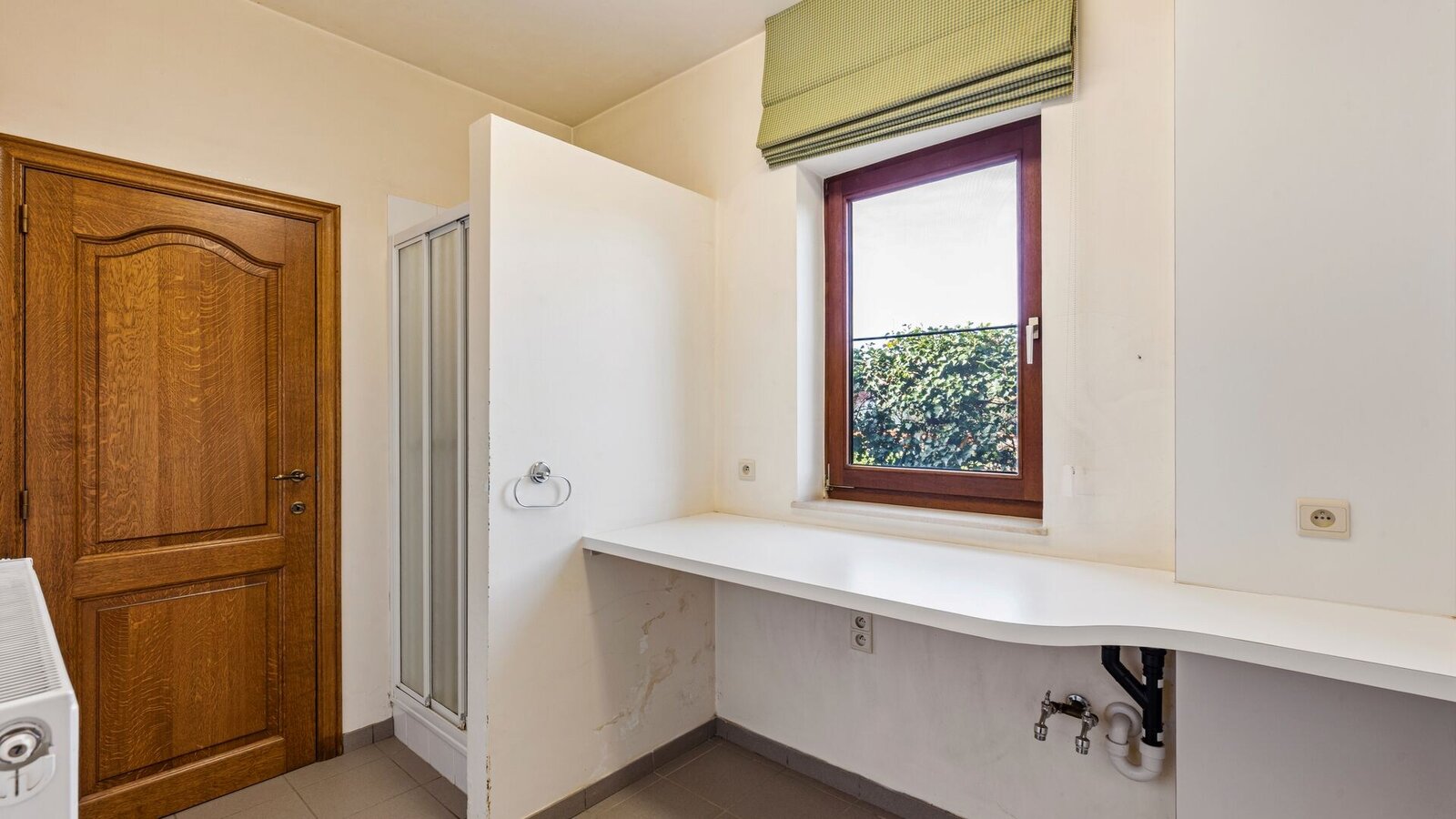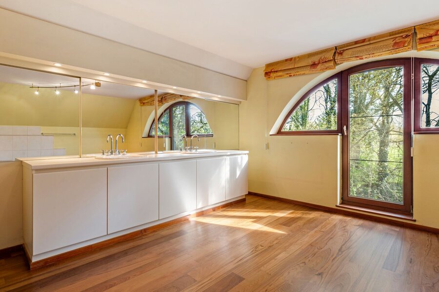Bij het betreden van de woning wordt u meteen verwelkomd door een warme, authentieke sfeer, versterkt door de prachtige eiken beplankte vloeren en degelijke afwerking. De woning beschikt over vier royale slaapkamers, ideaal voor gezinnen die waarde hechten aan ruimte en privacy, of voor wie extra kamers wenst voor een bureau, dressing of hobbyruimte.