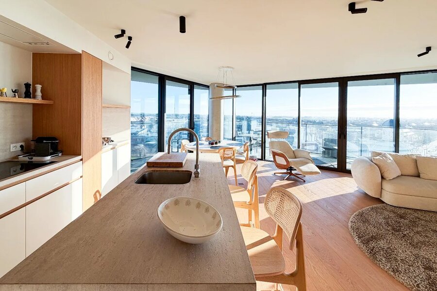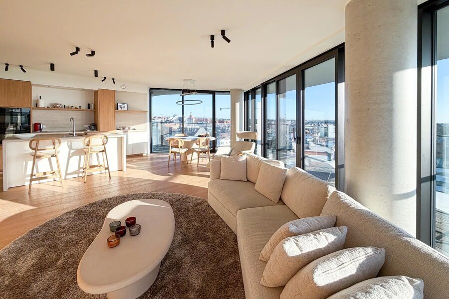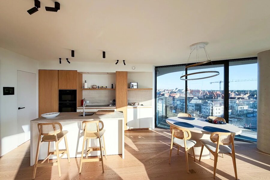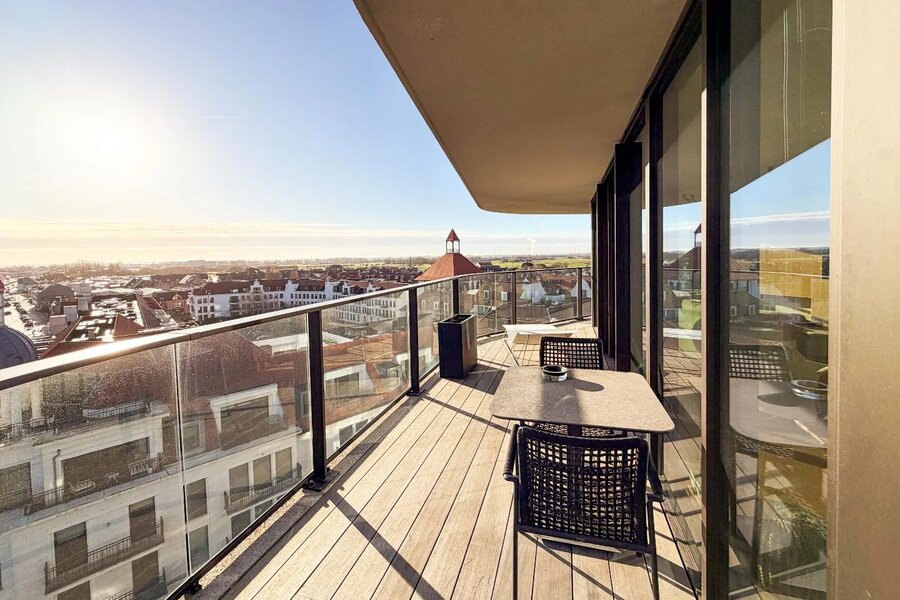 Duinenwater - Lake District - 'The Tower': Lumineux appartement d'angle central à Duinenwater, à distance de marche de la Lippenslaan, bénéficiant d'une grande terrasse ensoleillée avec de magnifiques vues, dans une finition moderne et épurée.