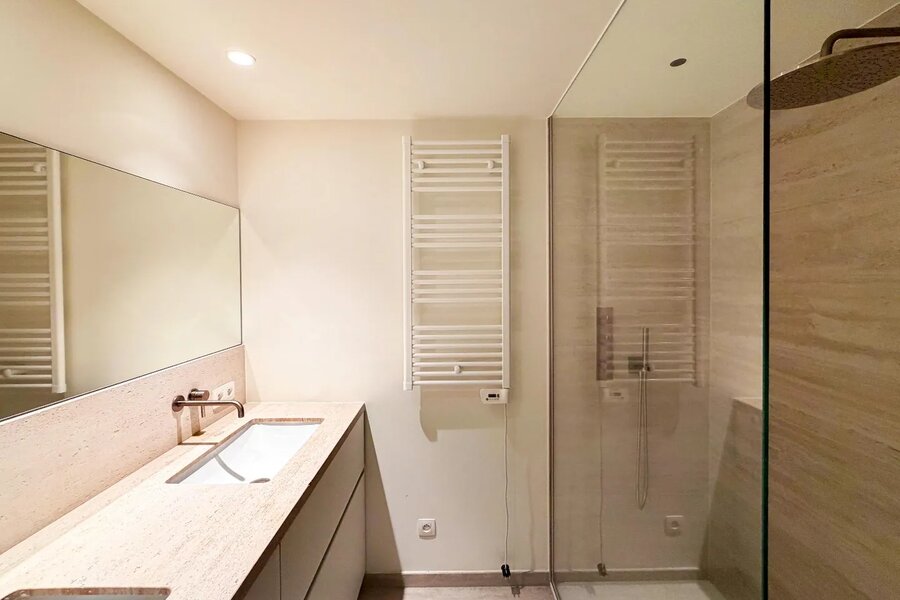 2 chambres, chacune avec accès à la terrasse, grande salle de bains équipée de tout le confort.