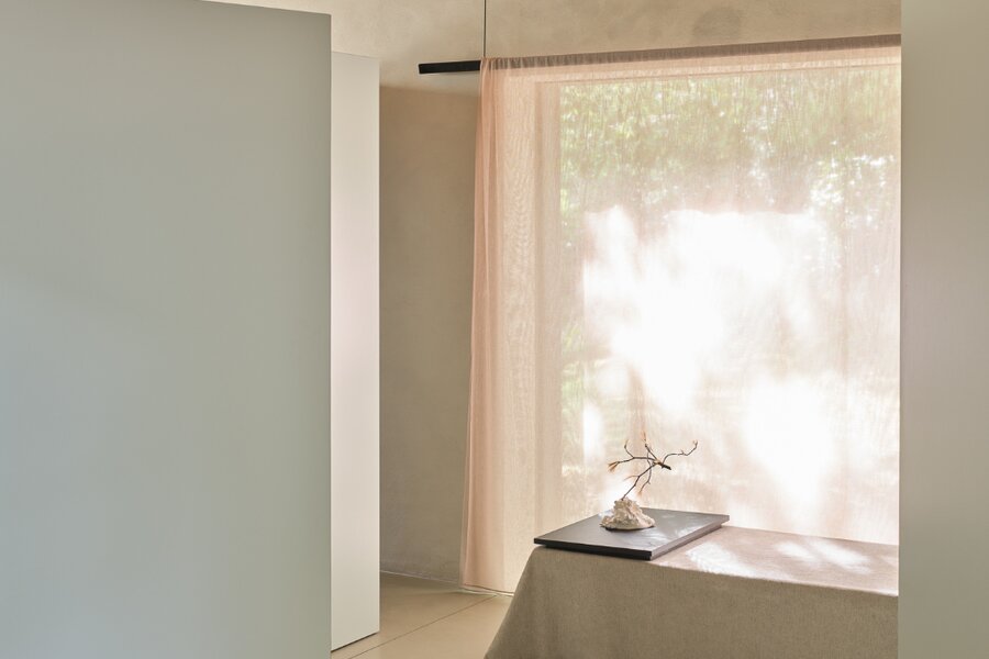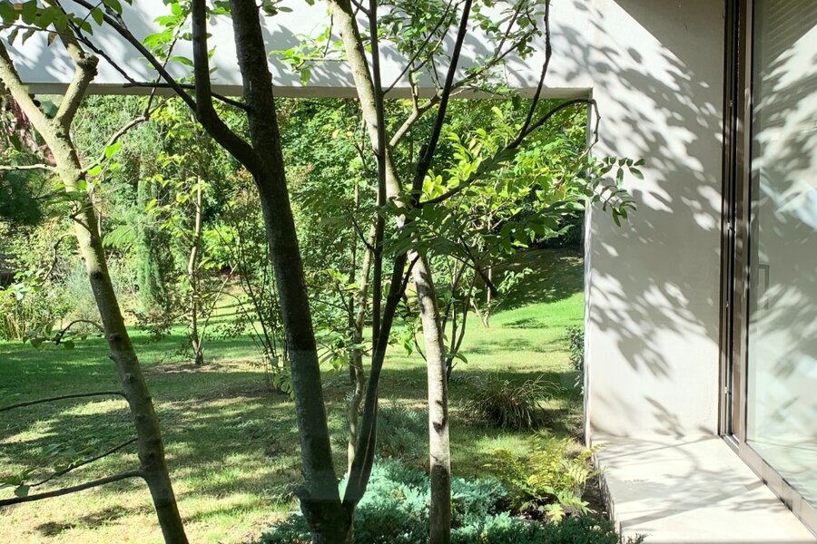 Deze architecturale ingrepen werden met dezelfde zorg doorgetrokken om de bijzondere omgeving maximaal te ervaren. Het resultaat is een subtiele symbiose, waarbij het licht en de zichten worden versterkt door de plafondhoge ramen tussen patio’s en tuin, waardoor een voortdurende verbinding tussen binnen en buiten ontstaat.